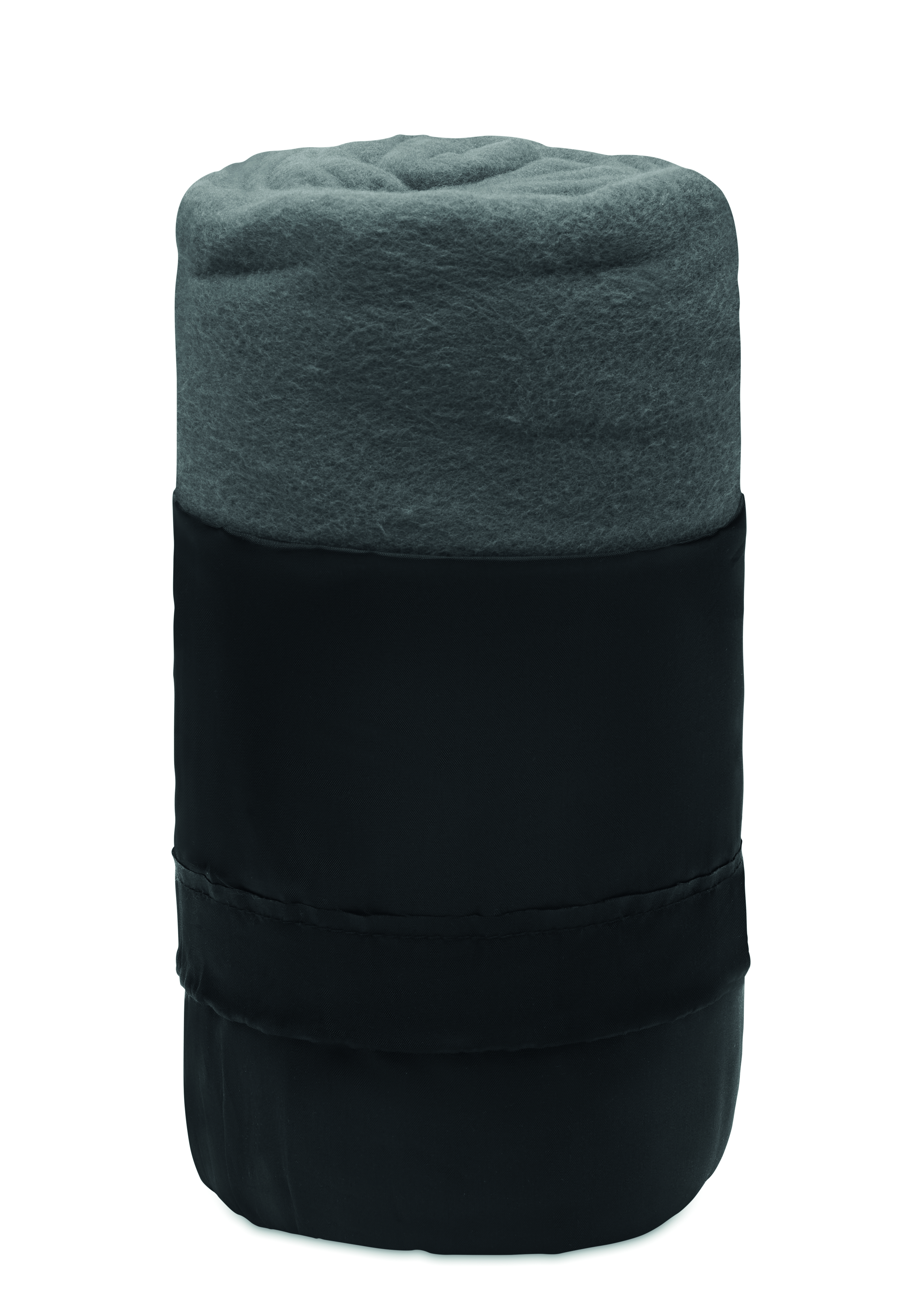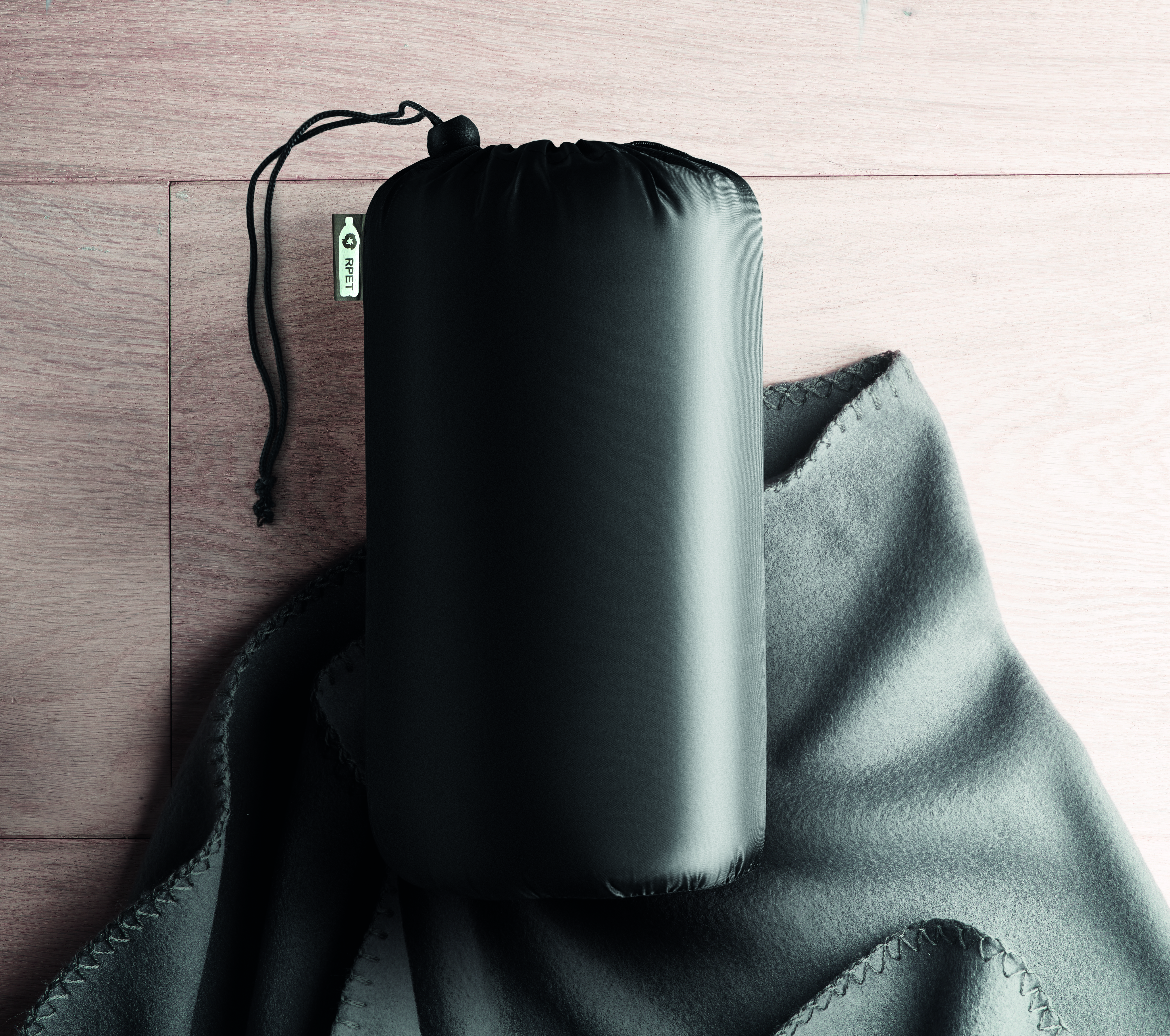Koc polarowy z RPET w torbie podróżnej z poliestru RPET. Polar o gramaturze 180 gr/m².