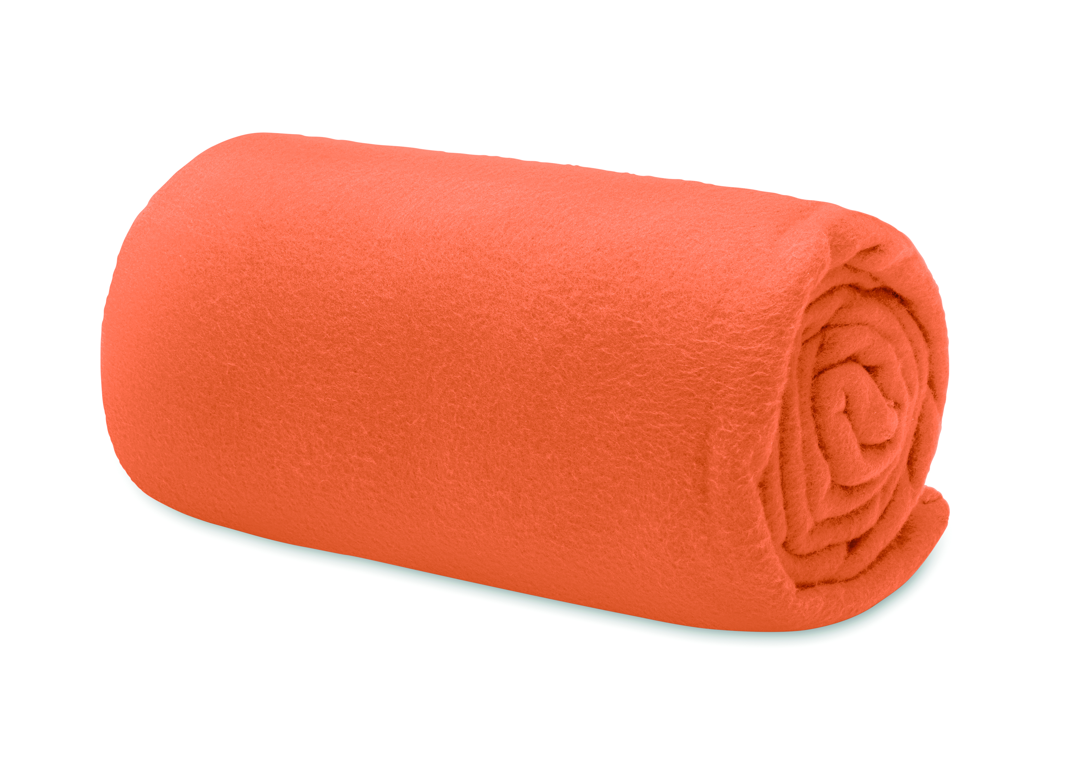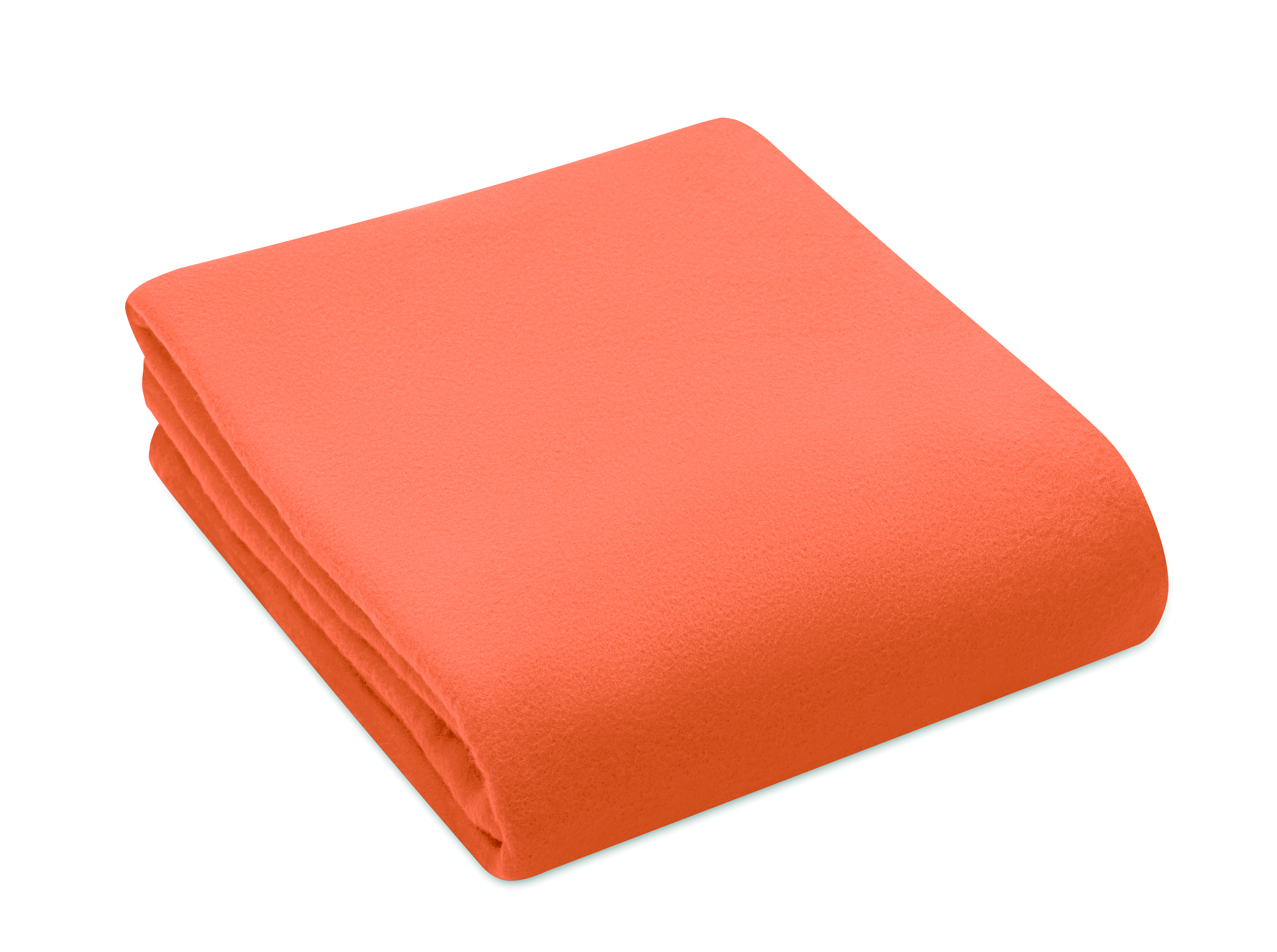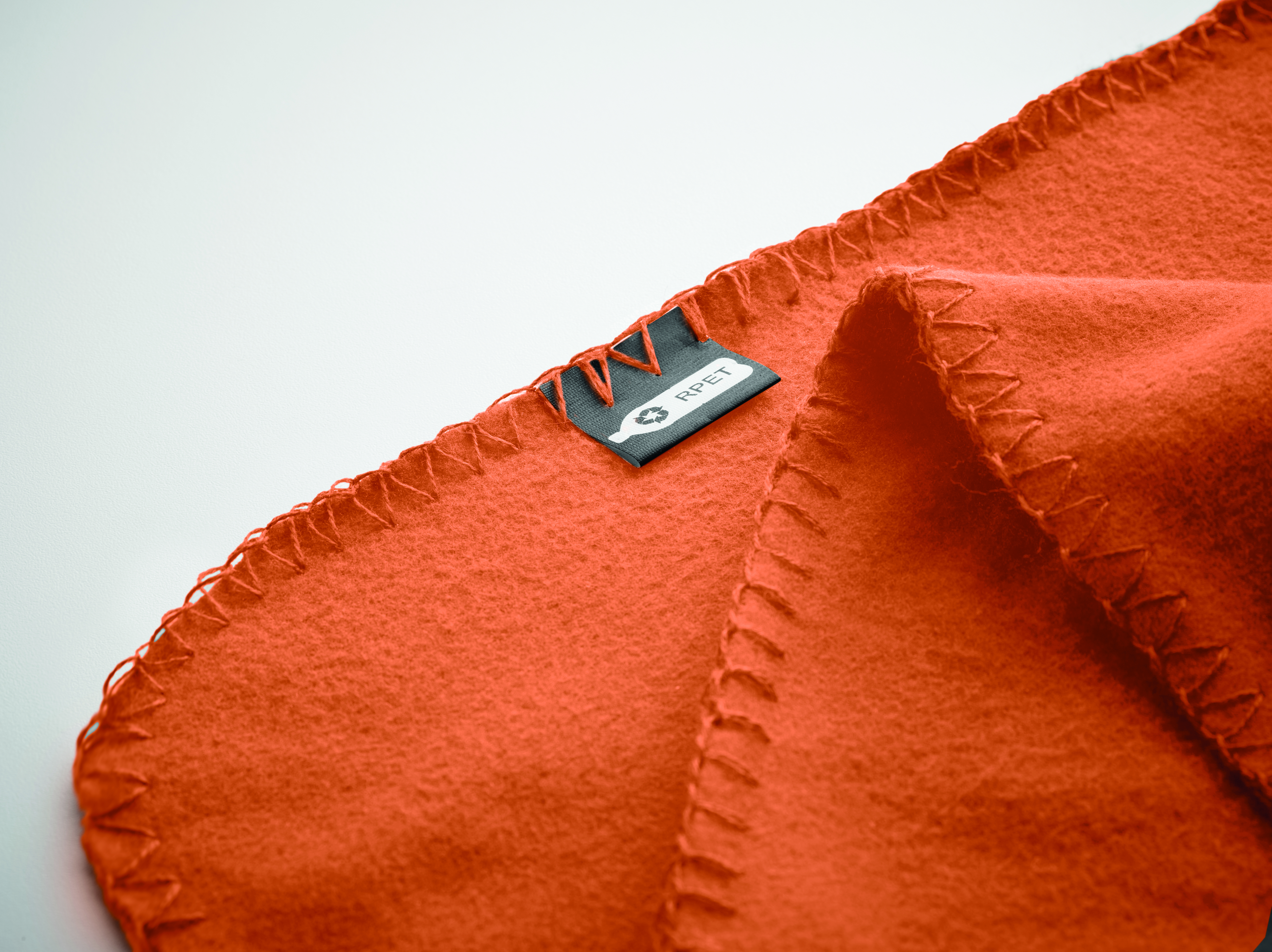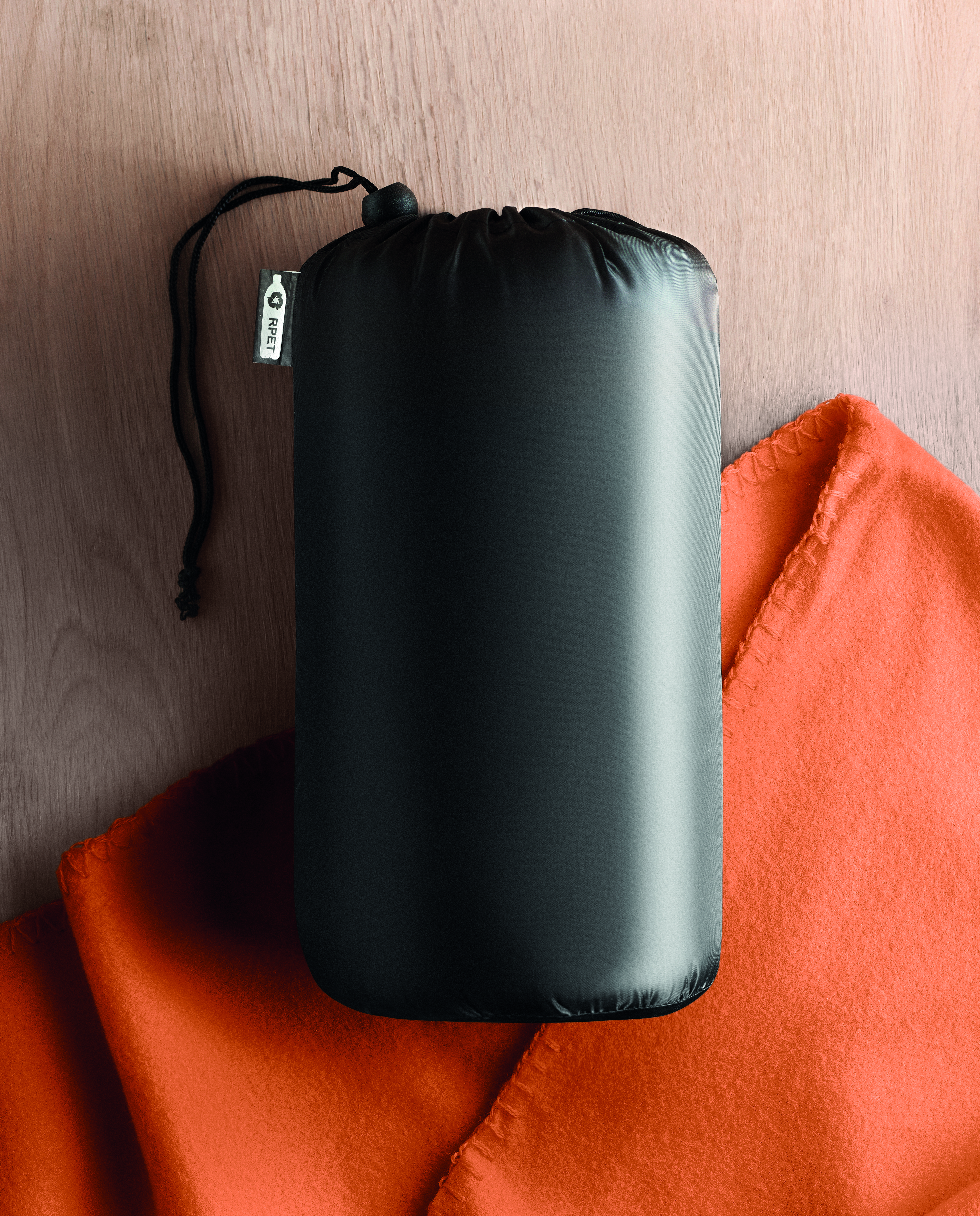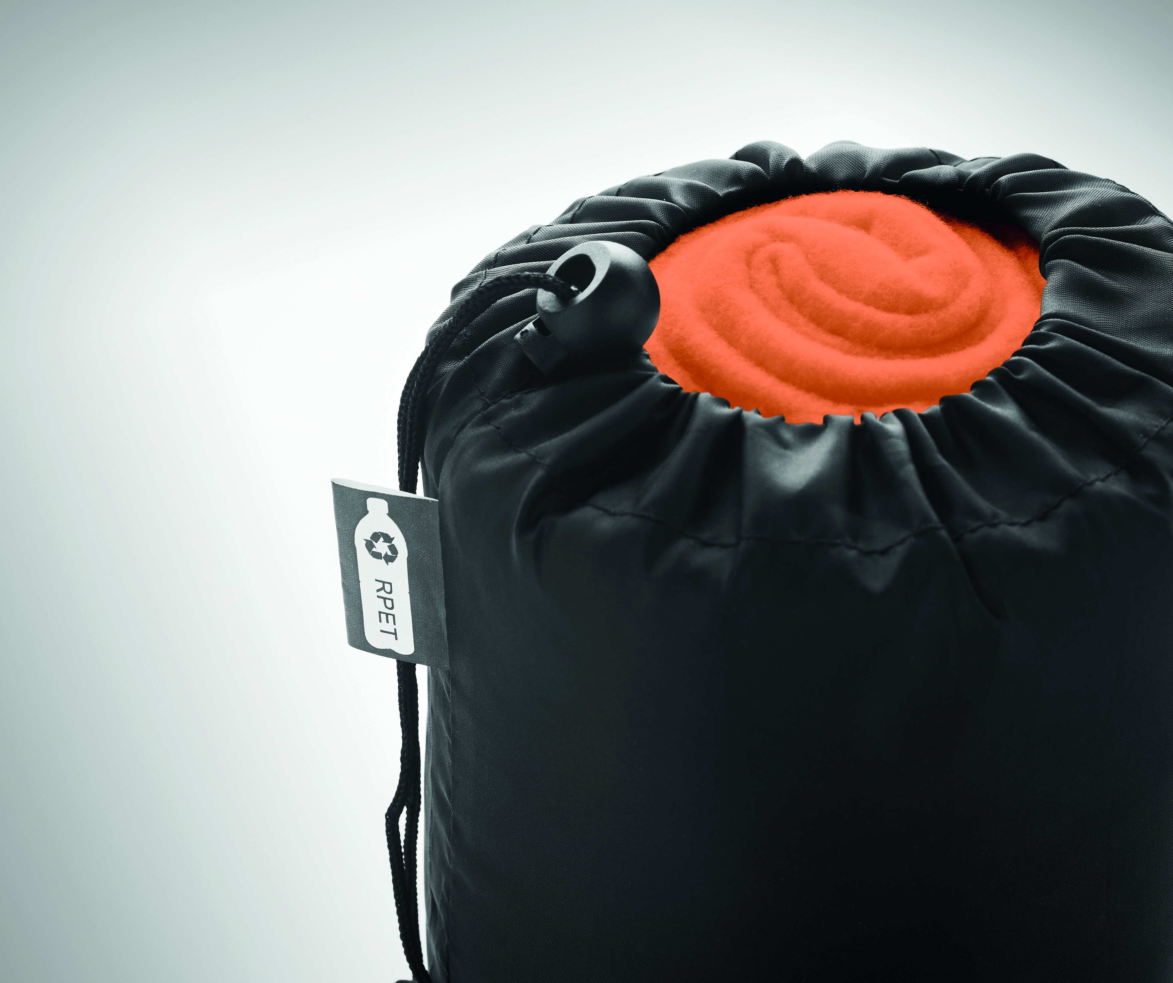 Koc polarowy z RPET w torbie podróżnej z poliestru RPET. Polar o gramaturze 180 gr/m².