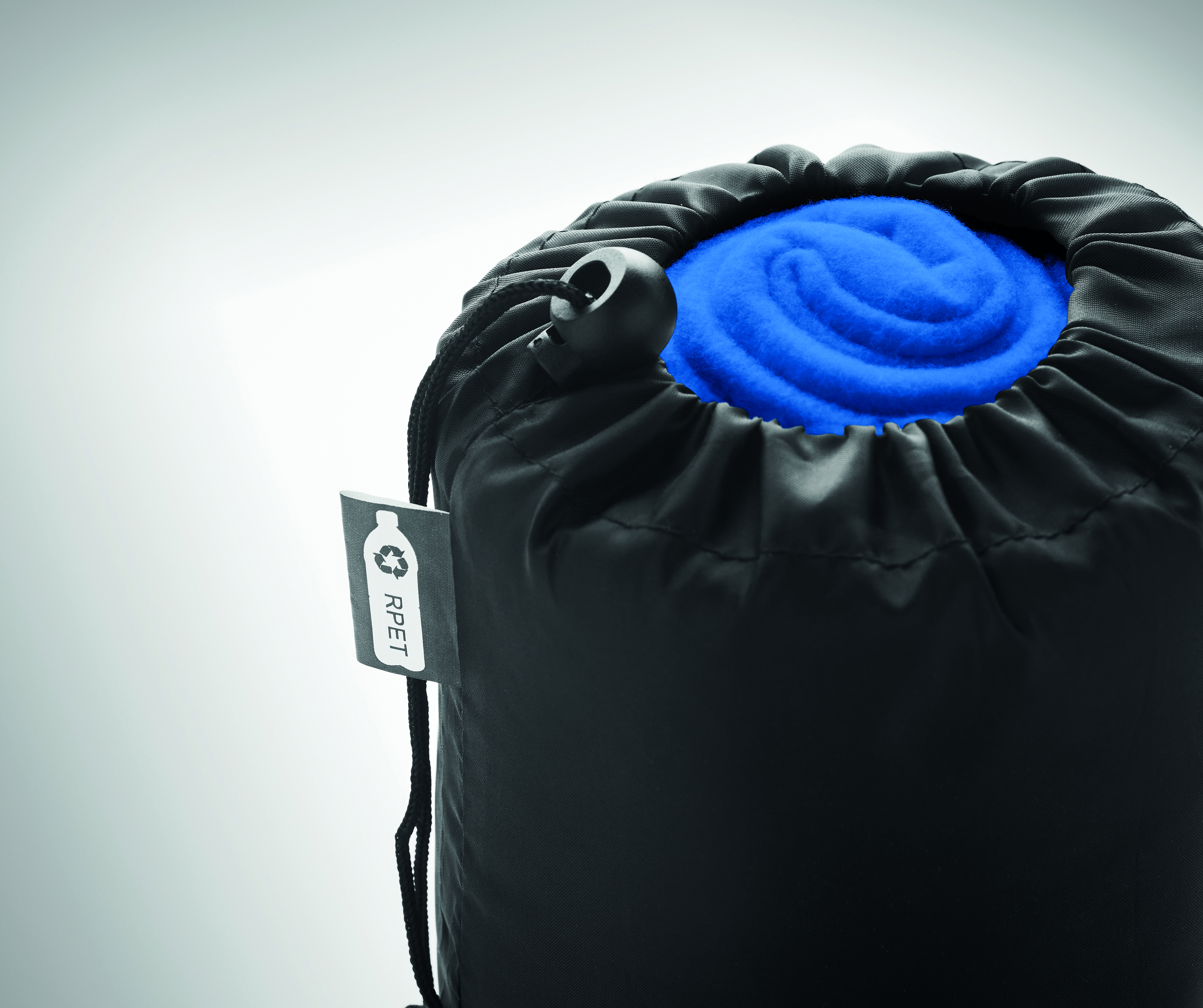 Koc polarowy z RPET w torbie podróżnej z poliestru RPET. Polar o gramaturze 180 gr/m².