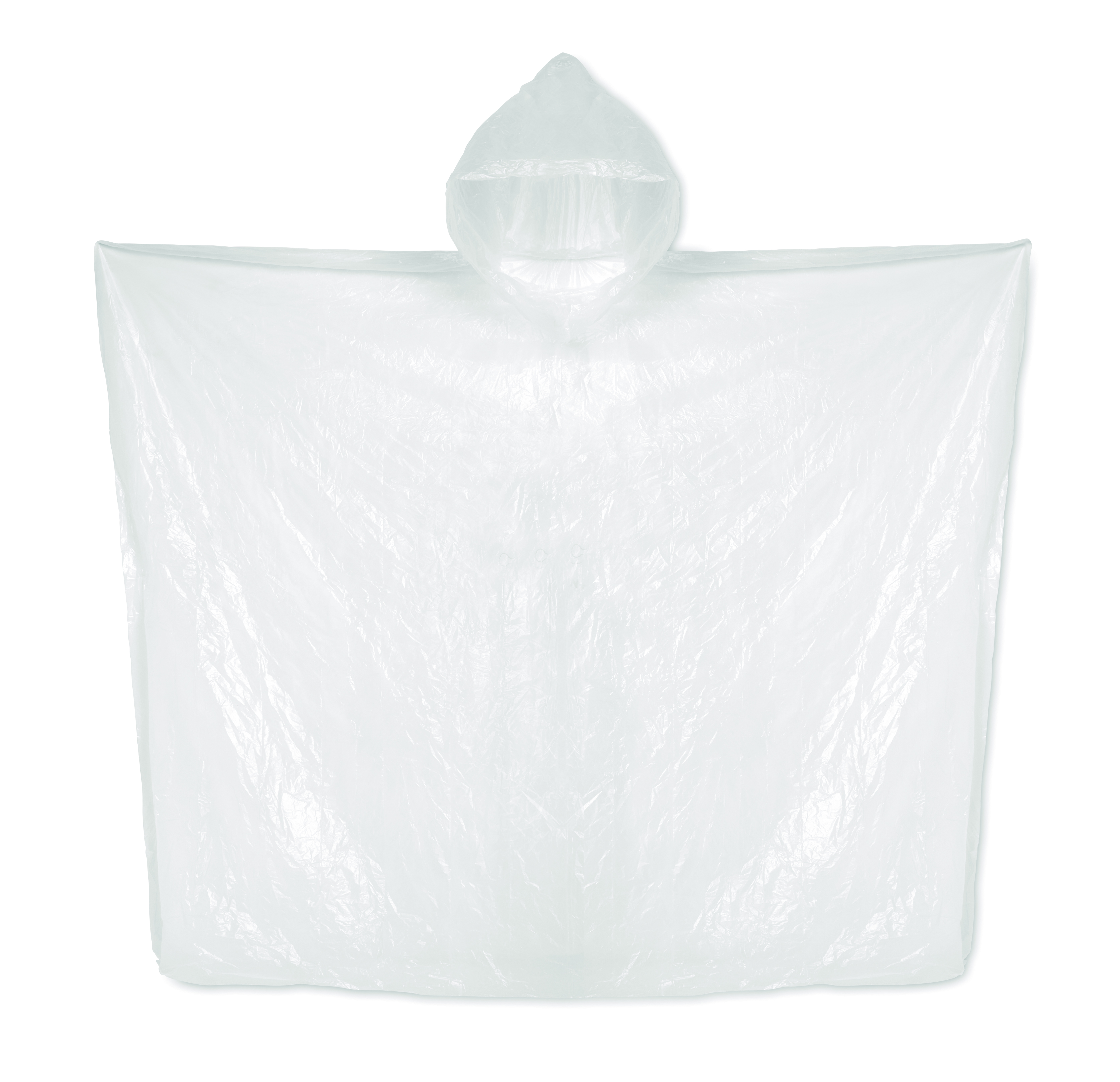Składane ponczo z materiału biodegradowalnego z kapturem, zapakowane biodegradowalny woreczek.