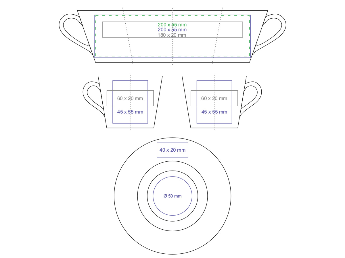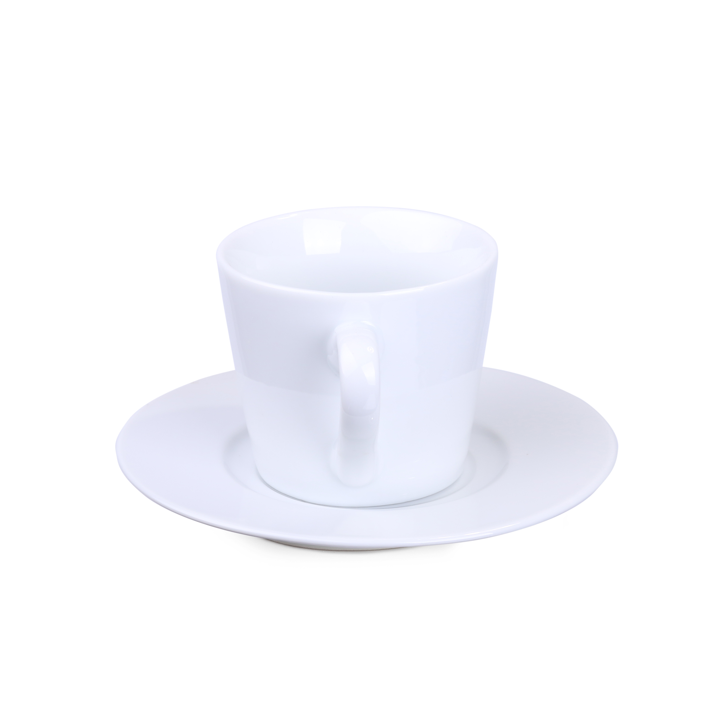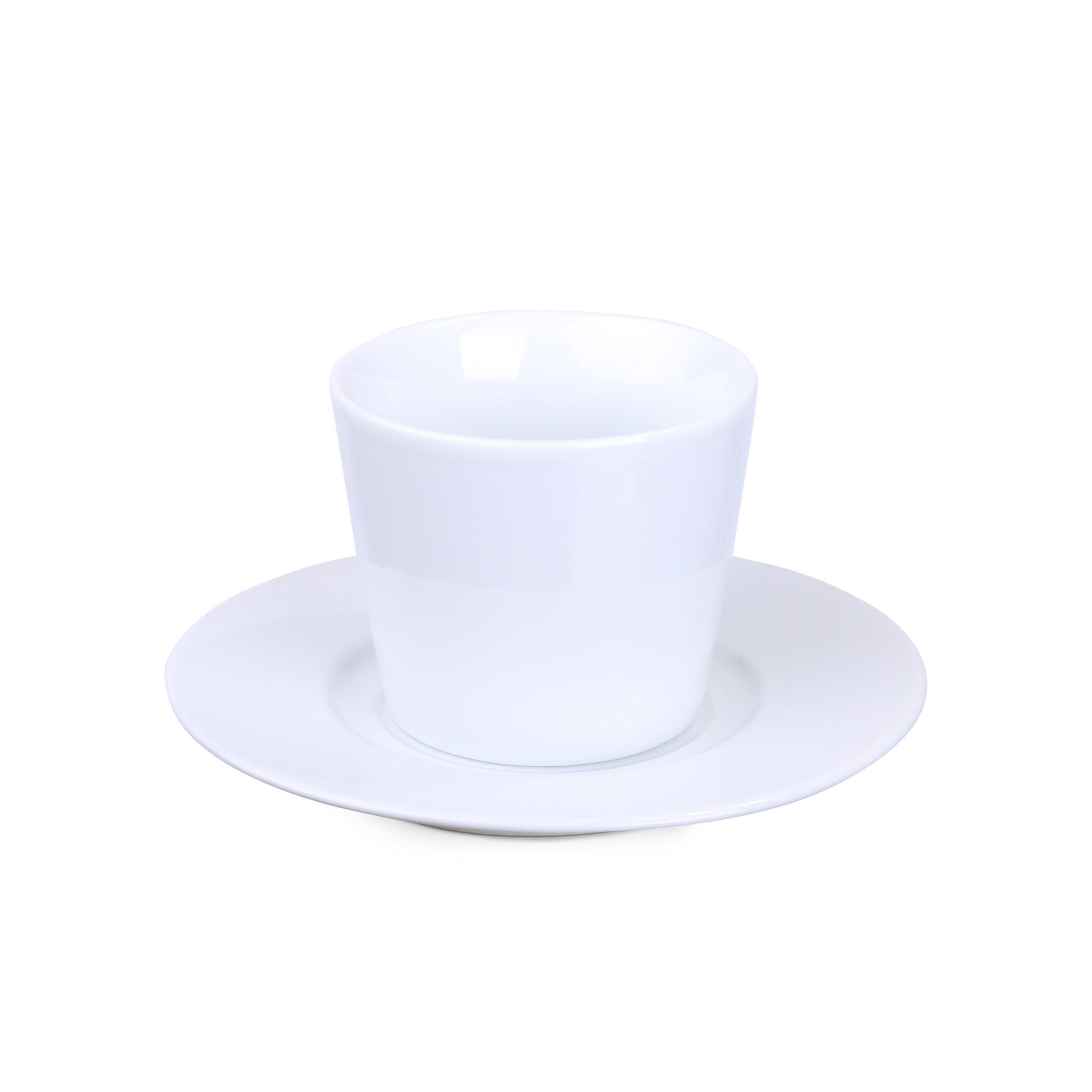 Subtelna filiżanka wykonana z wysokiej jakości porcelany. Jej proste ścianki doskonale wyeksponują naniesione zdobienie. Posiada prosty spodek, który nadaje się do wielokolorowych nadruków.