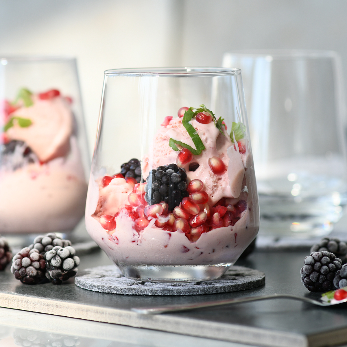Stylowa szklanka o intrygującym kształcie i uniwersalnym zastosowaniu. Stanowi ciekawe tło dla różnego rodzaju zdobień.