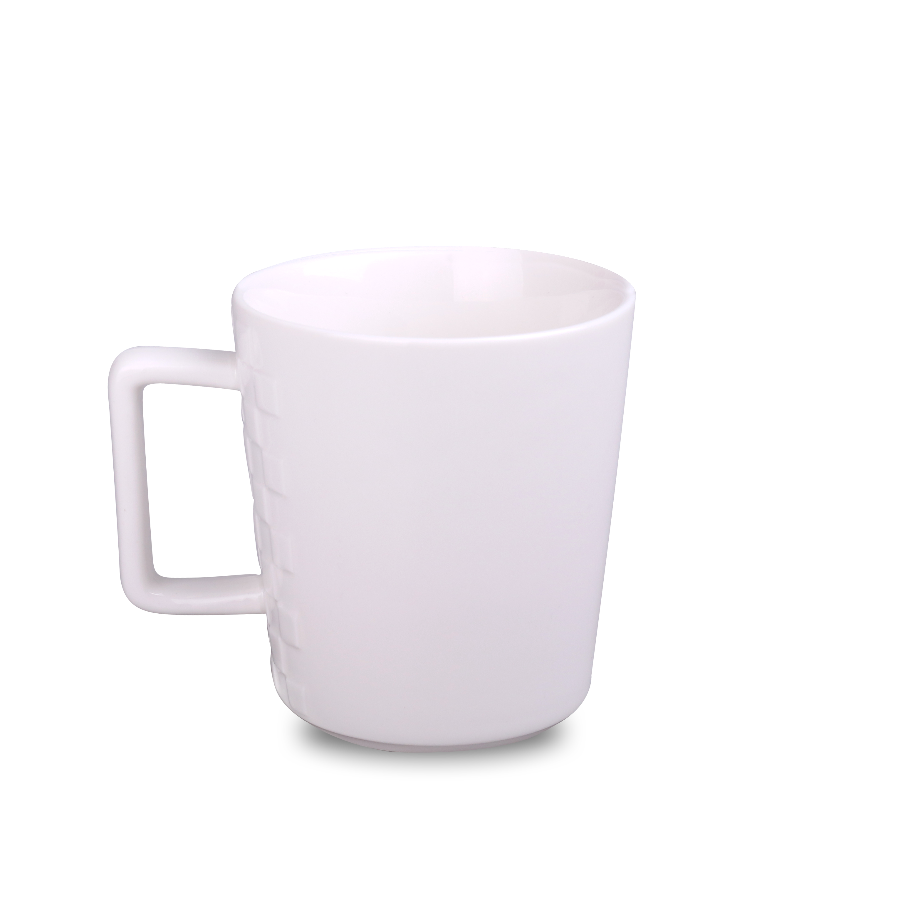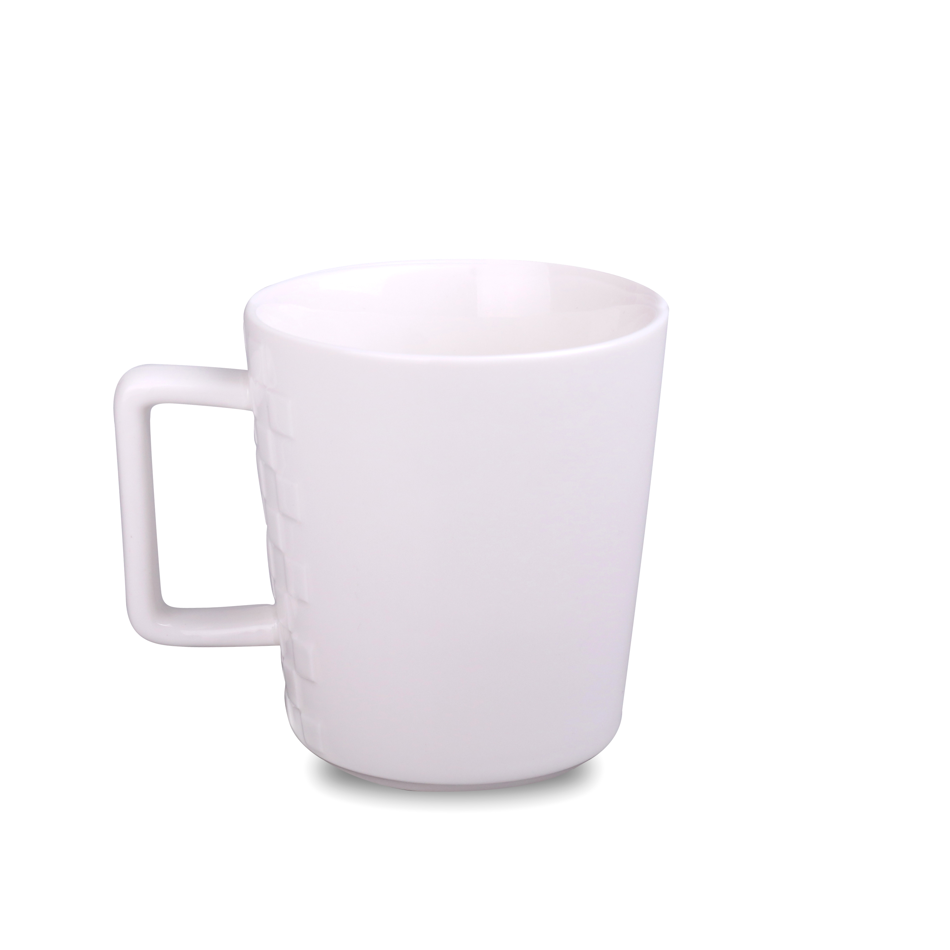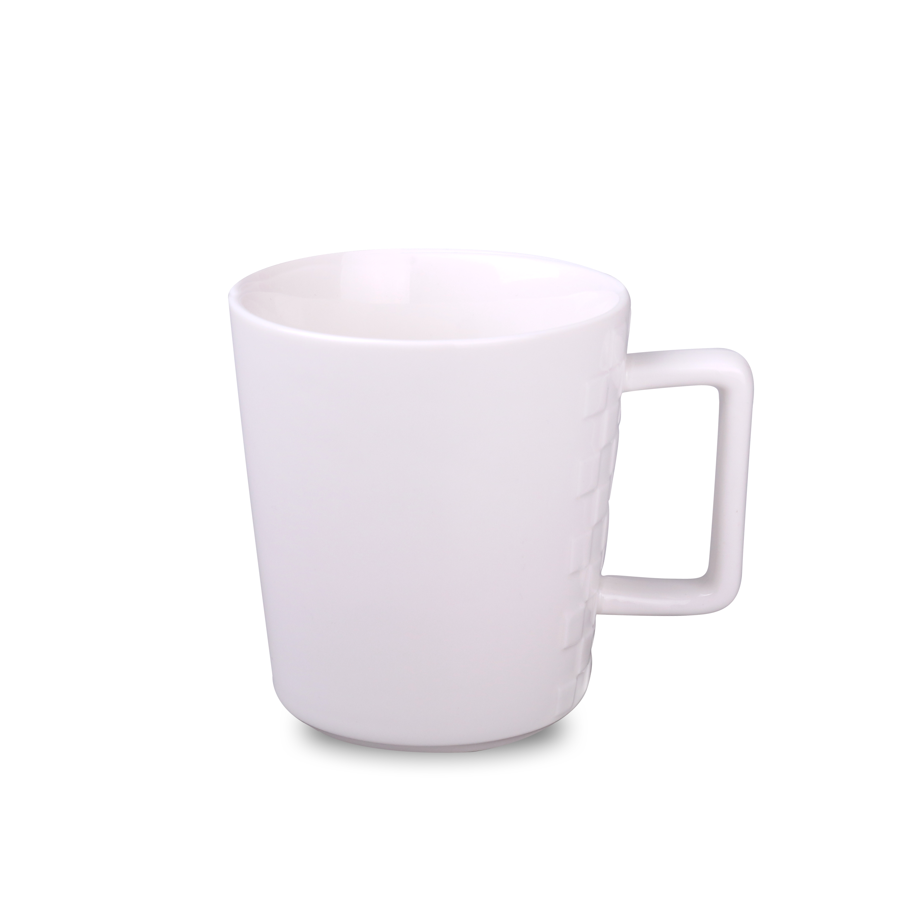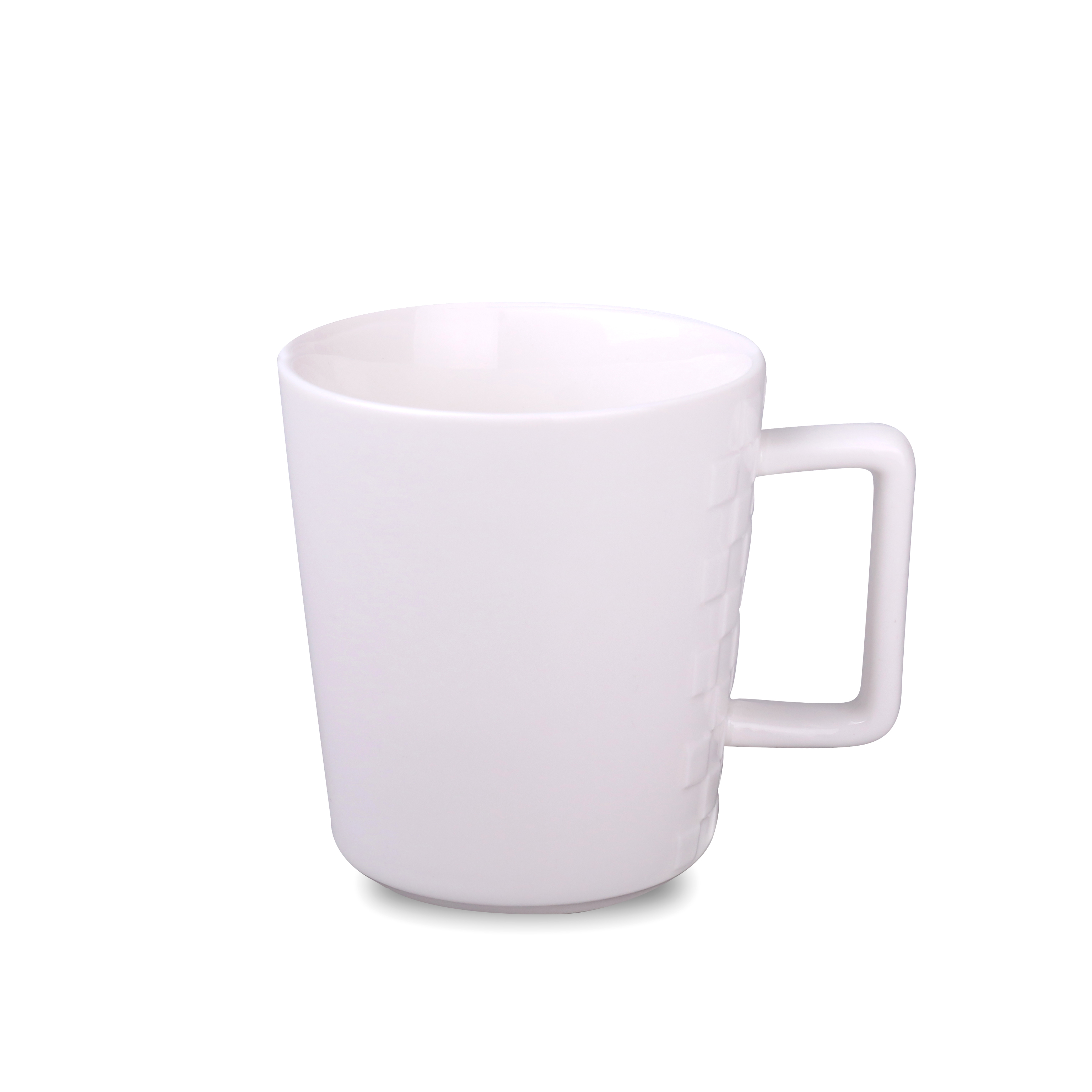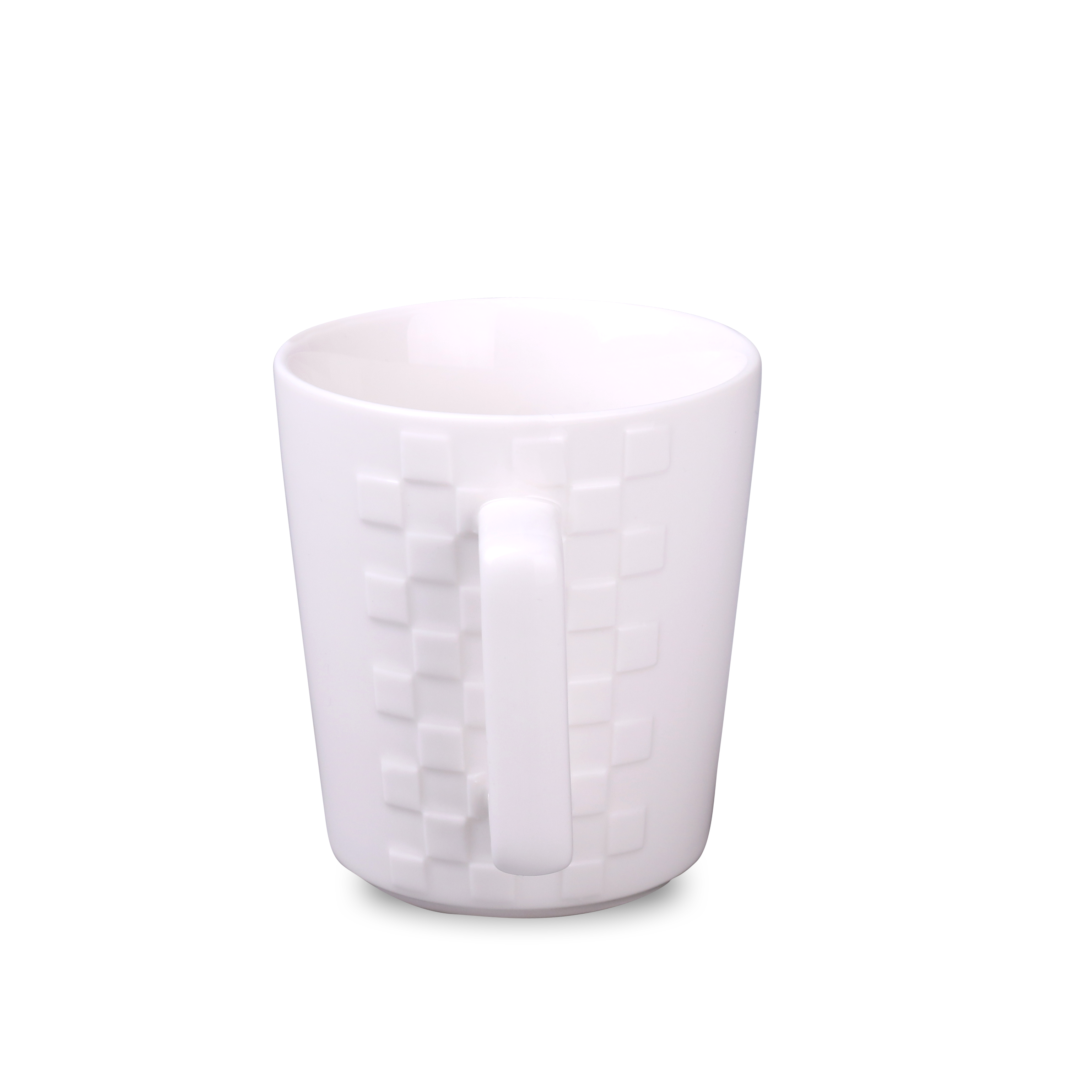 Elegancki kubek wykonany z wysokiej jakości porcelany. Posiada oryginalne wypustki po obu stronach ucha, które sprawiają, że wygląda bardzo designersko. Posiada ergonomiczne ucho.