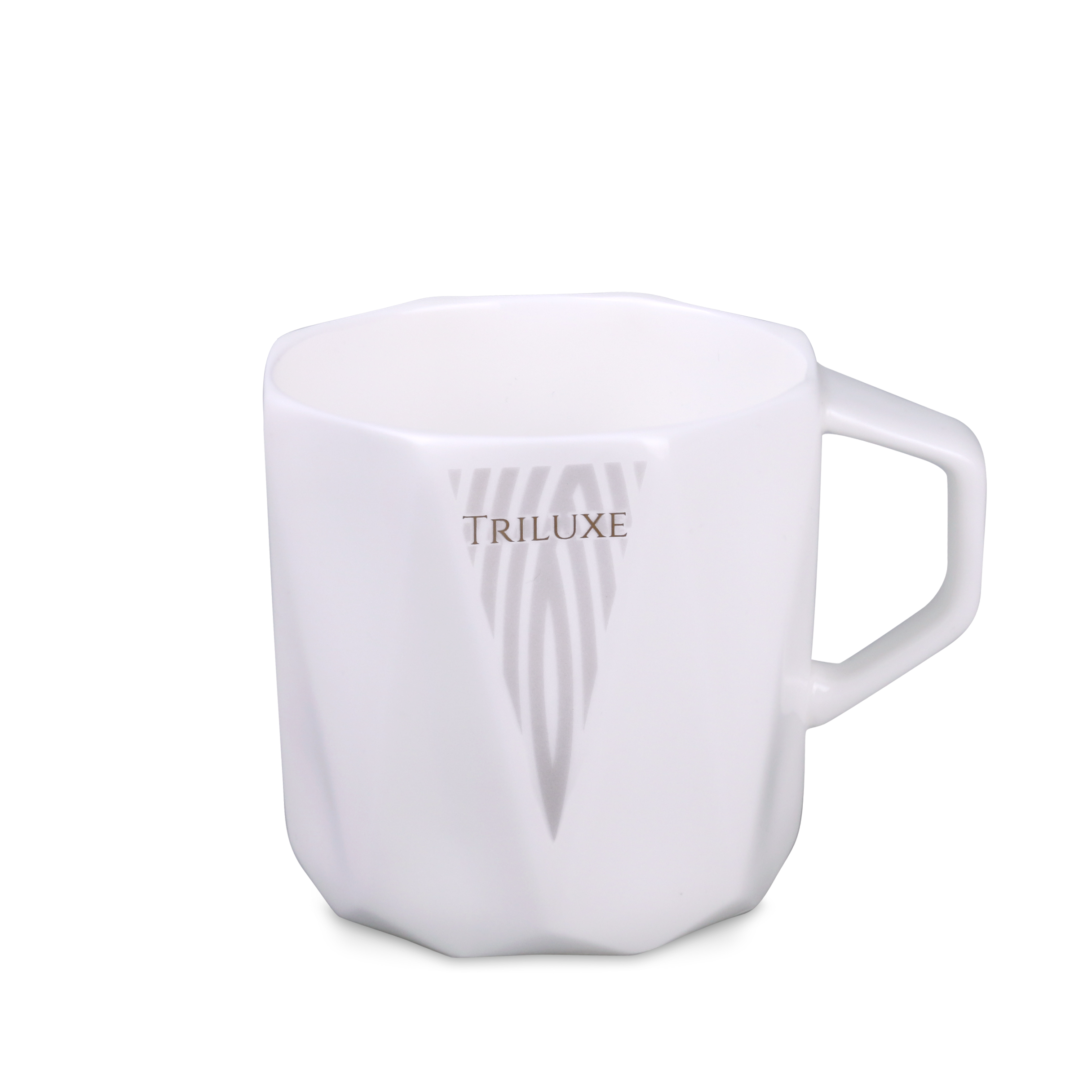 Prestiżowy kubek wykonany z najwyższej klasy porcelany Fine Bone China. Wyróżnia go wyjątkowy geometryczny kształt swą strukturą przypominający diament. Reprezentant linii Prestige Line.