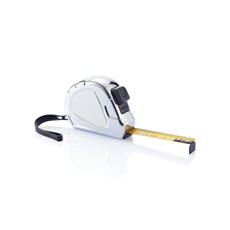 Miara 5 m, funkcja auto stop, żółta, matowa taśma o szerokości 19 mm, obudowa wykonana z chromowanego ABS, klip ze stali nierdzewnej, ślad węglowy produktu: 1,25 kg CO2
