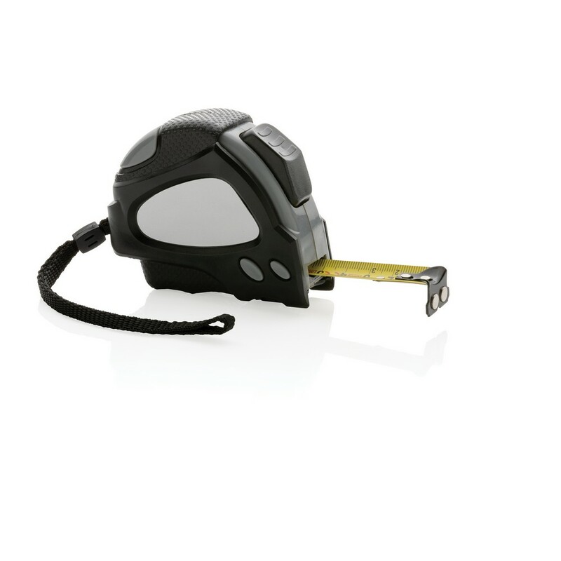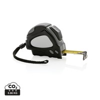Miara 5 m, taśma o szerokości 19 mm z haczykiem i magnesami, przycisk blokady, wykonana z ABS pochodzącego z recyklingu z certyfikatem RCS (Recycled Claim Standard) który gwarantuje, że wykorzystane materiały pochodzą z recyklingu, całkowita zawartość materiału z recyklingu obliczona w oparciu o wagę całkowitą przedmiotu: 14%, uchwyt z TPR, w pudełku z papieru kraftowego z certyfikatem FSC® mix (Forest Stewardship Council), ślad węglowy produktu: 0,94 kg CO2