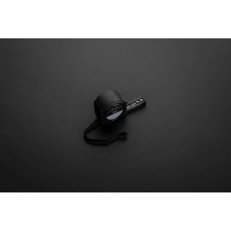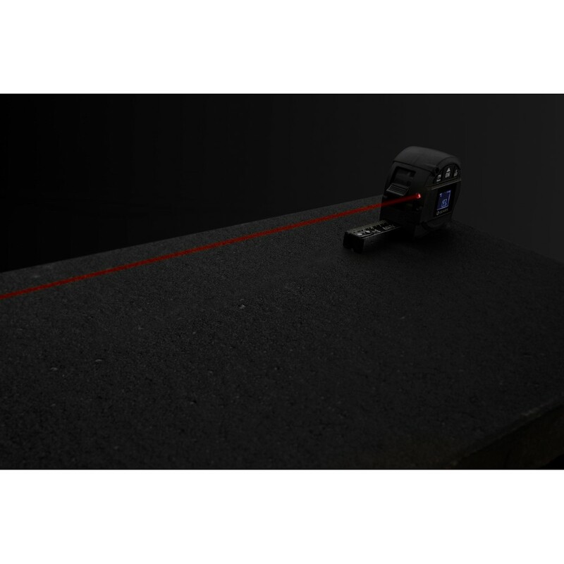 Miara 5 m, przycisk blokady, dalmierz laserowy 30m, wbudowany ekran LCD, czarna, dwustronna taśma wykonana z trwałego włókna węglowego, wbudowany akumulator, w pudełku podarunkowym, ślad węglowy produktu: 2,14 kg CO2