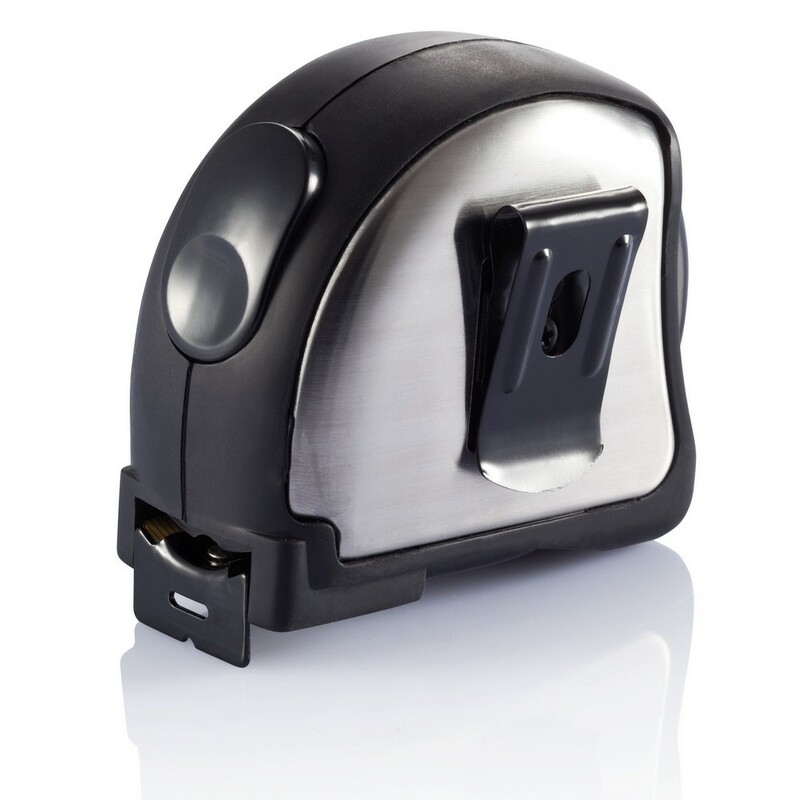 Miara 5 m z klipem do paska, żółta taśma o szerokości 25 mm, wykonana ze stali nierdzewnej, ślad węglowy produktu: 1,62 kg CO2