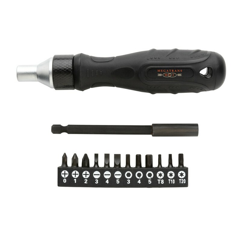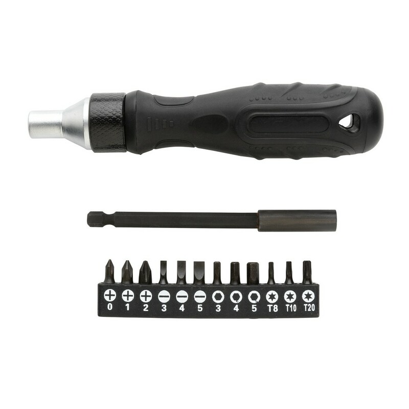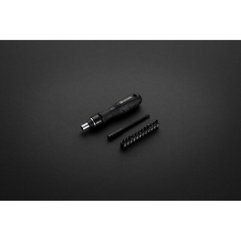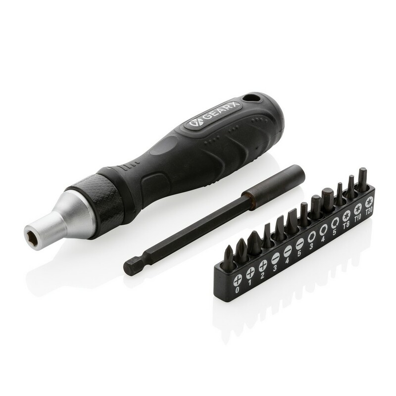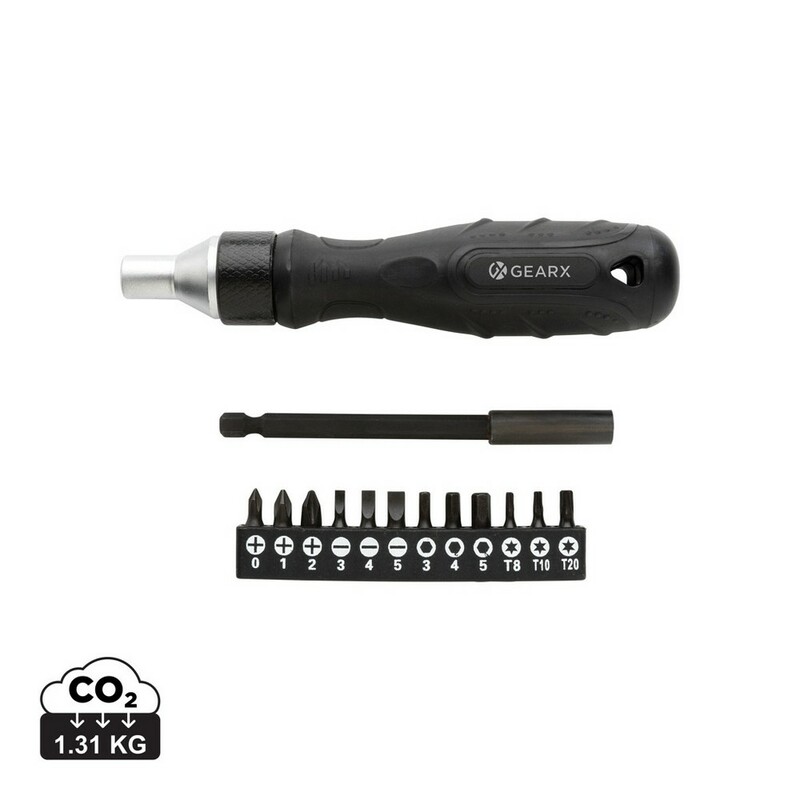 Zestaw narzędzi, w komplecie wkrętak i oraz 12 bitów, wbudowany silny magnes, wykonany ze stali stopowej S2, w pudełku podarunkowym, ślad węglowy produktu: 1,31 kg CO2