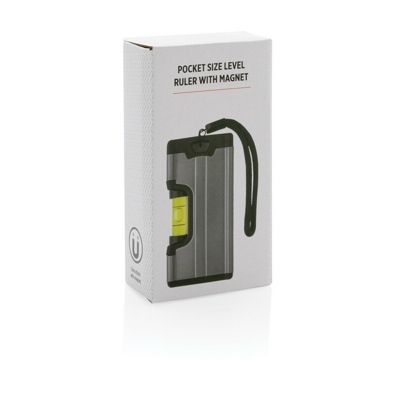 Poziomica 10 cm, kieszonkowy rozmiar, magnetyczna podstawa, gumowe zaślepki, dokładność do 0,5 mm, ślad węglowy produktu: 2,63 kg CO2