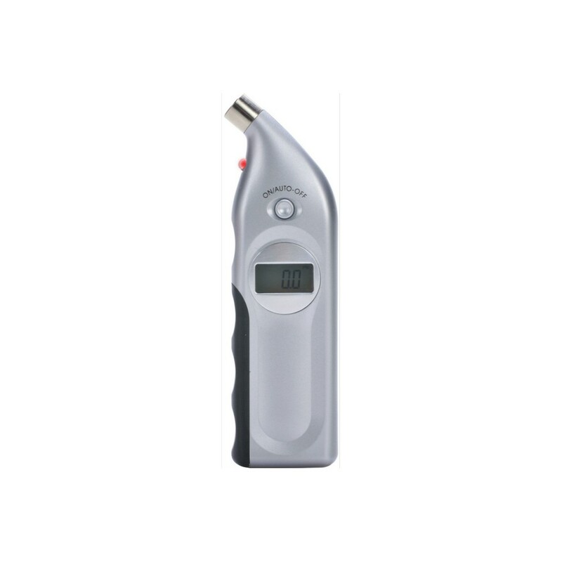 Cyfrowy miernik ciśnienia opon, manometr, miernik zużycia bieżnika, wykonany ze srebrnego ABS, czarny uchwyt, czerwona diodą LED, zakres pomiaru: 5-100 PSI, 0.5-7 Bar, 50-700 Kpa, ślad węglowy produktu: 1,18 kg CO2