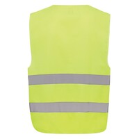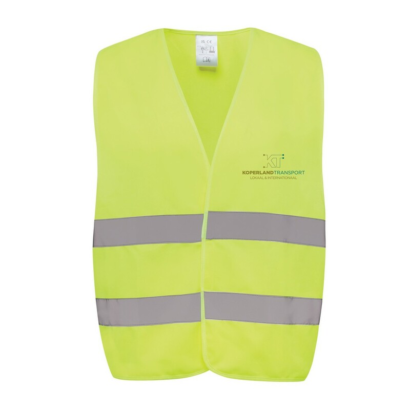 Kamizelka odblaskowa, wykonana z PET z recyklingu, całkowita zawartość materiałów obliczona na podstawie wagi całkowitej przedmiotu: 76%, zgodna z normami EN ISO 20471:2013+A1:2016, UE 2016/425/UE, ślad węglowy produktu: 0,98 kg CO2