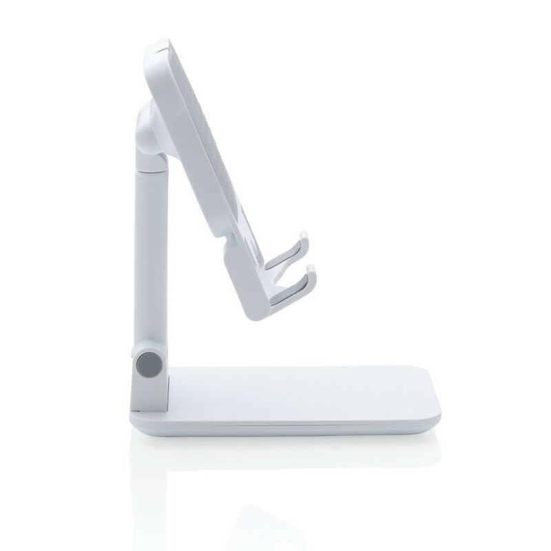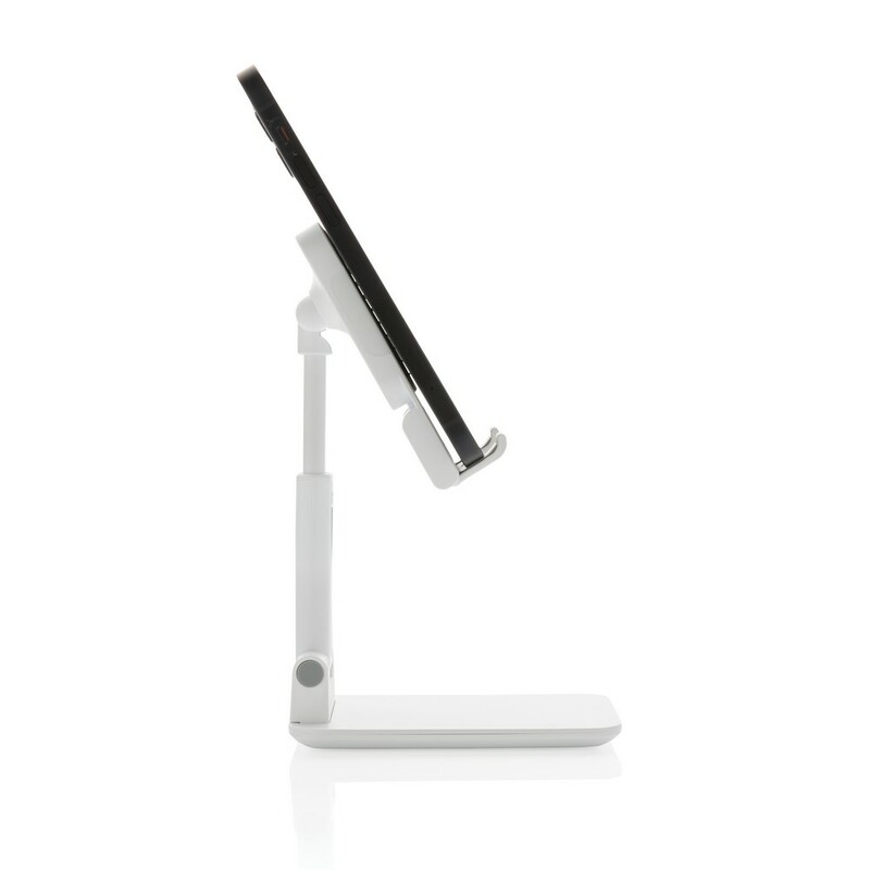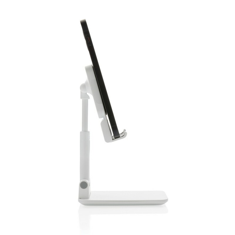 Stojak na telefon, tablet, wykonany z ABS, regulowana wysokość, silikonowy element chroniący przed zarysowaniem w którym można umieścić ładowarkę Magsafe, ciężka podstawa i silikonowe paski zapewniają stabilność, ślad węglowy produktu: 1,03 kg CO2