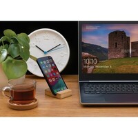 Stojak na telefon, wykonany w 100% z naturalnego bambusa, ślad węglowy produktu: 0,13 kg CO2