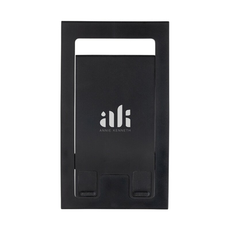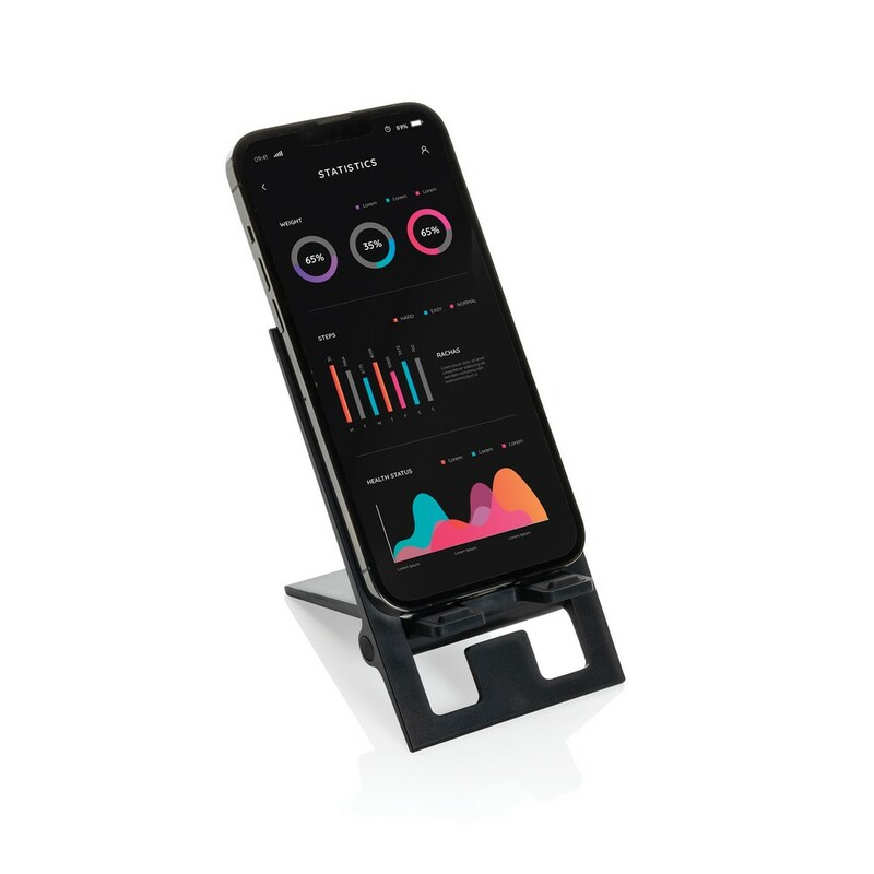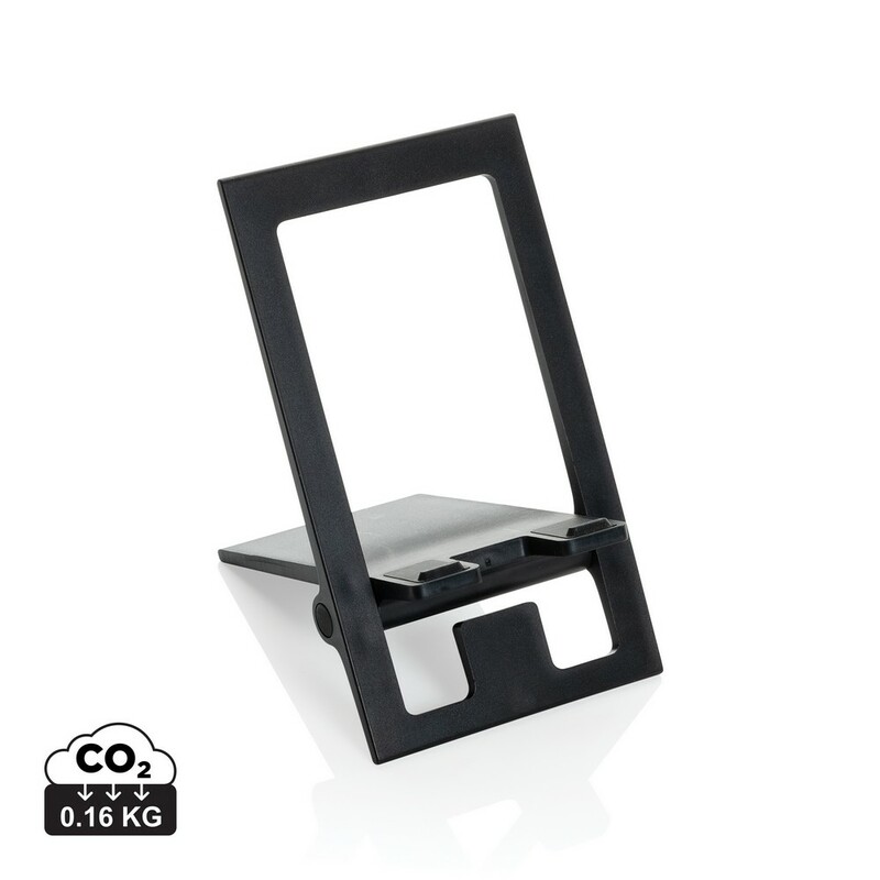 Stojak na telefon, składany, wykonany z ABS z recyklingu z certyfikatem RCS, całkowita zawartość materiałów z recyklingu obliczona w oparciu o wagę całkowitą przedmiotu: 85%, w pudełku z certyfikatem FSC®