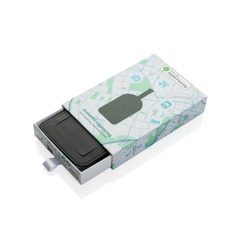 Zawieszka bagażowa, wykrywacz, lokalizator, produkt wykonany z poliestru pochodzącego z recyklingu RCS, po pełnym naładowaniu produkt działa ok. 6 miesięcy, całkowita zawartość materiałów z recyklingu 9% w oparciu o całkowitą wagę produktu, certyfikat RCS zapewnia w pełni certyfikowany łańcuch dostaw materiałów pochodzących z recyklingu, zapakowany w opakowanie prezentowe FSC® mix