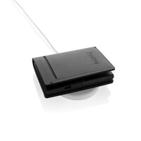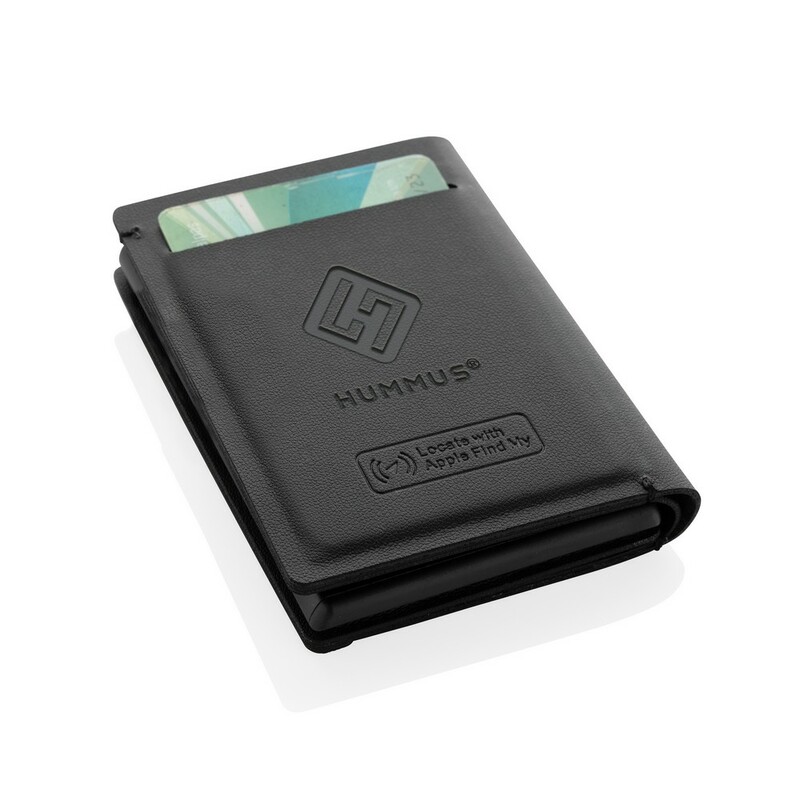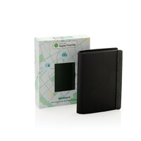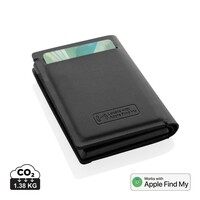 Portfel z lokalizatorem, bezprzewodowy lokalizator, wykonany z certyfikowanego recyklingowanego poliestru RCS i aluminium, obsługa technologii Apple Find My, powiadomienia o zgubieniu portfela, funkcja precyzyjnego lokalizowania na całym świecie, wbudowany dźwiękowy sygnał naprowadzający, akumulator ładowany bezprzewodowo, czas pracy do 6 miesięcy po godzinnym ładowaniu, miejsce na 3 karty oraz dodatkową przestrzeń, opakowanie prezentowe FSC® mix