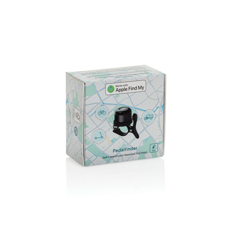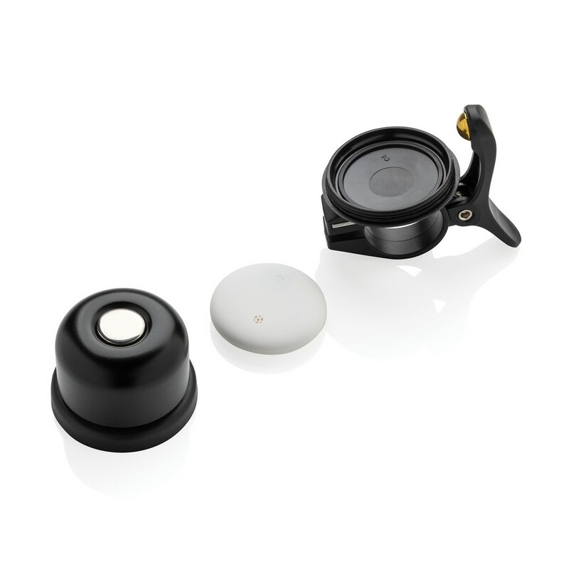 Bezprzewodowy lokalizator roweru, dzwonek do roweru, produkt zasilany zestawem trwałych baterii, które zapewniają do ok. 6 miesięcy użytkowania przed koniecznością wymiany, wodoodporny IPX5, zapakowany w opakowanie prezentowe FSC® mix