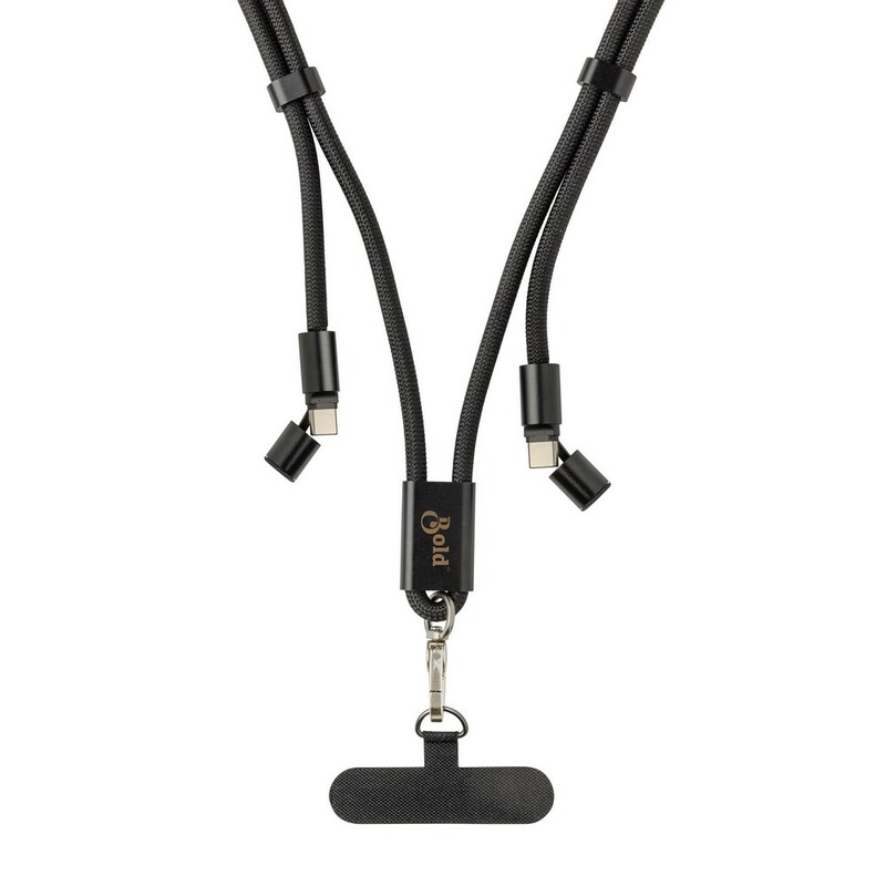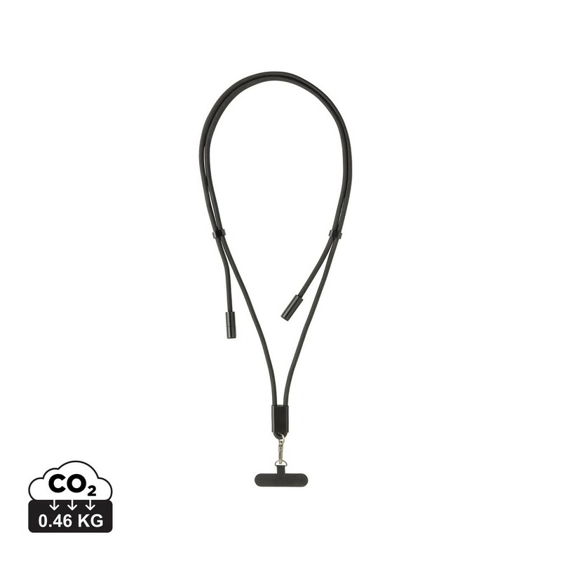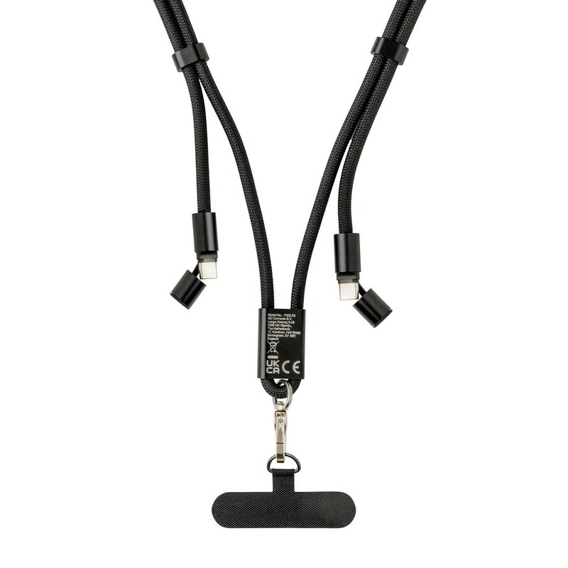 Kabel do ładowania i synchronizacji danych, smycz na telefon, wykonany z RPET z certyfikatem RCS, moc całkowita ładowania do 60W, końcówki USB-C do USB-C, całkowita zawartość materiałów z recyklingu obliczona na podstawie wagi całkowitej przedmiotu: 84%