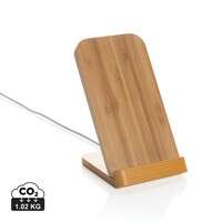 Ładowarka bezprzewodowa 5W, stojak na telefon, wykonana w 100% z bambusa z certyfikatem FSC (Forest Stewardship Council), bezprzewodowe ładowanie jest kompatybilne ze wszystkimi urządzeniami posiadającymi możliwość ładowania indukcyjnego, wejście micro USB 5V/2A, wyjście 5V/1A, 5W, kabel 150 cm w komplecie, produkt oraz akcesoria nie zawierają PVC, w pudełku FSC, ślad węglowy produktu: 1,02 kg CO2