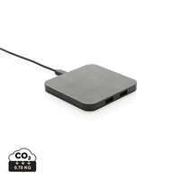 Ładowarka bezprzewodowa 10W, wykonana z ABS z recyklingu, posiada certyfikat RCS (Recycled Claim Standard), całkowita zawartość materiału z recyklingu obliczona w oparciu o wagę całkowitą przedmiotu: 57%, bezprzewodowe ładowanie jest kompatybilne ze wszystkimi urządzeniami posiadającymi możliwość ładowania indukcyjnego, funkcja szybkiego ładowania, wejście USB typu C 5V/2A, 9V/1,67A, wyjście bezprzewodowe 5V/1A, 9V/1,1A, kabel USB typu C 120 cm wykonany z TPE z recyklingu w komplecie, w pudełku kraftowym z certyfikatem FSC® mix, nie zawiera PVC, ślad węglowy produktu: 0,76 kg CO2