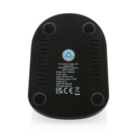 Ładowarka bezprzewodowa 15W, posiada wbudowane 2 cewki ładujące, ładować można zarówno w pozycji pionowej jak i horyzontalnej, obudowa wykonana z materiałów pochodzących z recyklingu, posiadają certyfikat RCS (Recycled Claim Standard), który jest stosowany gdy produkt jest wykonany częściowo lub w całości z materiałów pochodzących z recyklingu, całkowita zawartość materiałów z recyklingu to 56%, obliczona na podstawie wagi całkowitej przedmiotu, bezprzewodowe ładowanie jest kompatybilne ze wszystkimi urządzeniami posiadającymi możliwość ładowania indukcyjnego, wejście 12V/1.67A, wyjście bezprzewodowe 9V/1.5A, 15W, w komplecie kabel 150 cm wykonany z TPE z recyklingu, w opakowaniu z certyfikatem FSC mix, nie zawiera PVC, ślad węglowy produktu: 1,35 kg CO2