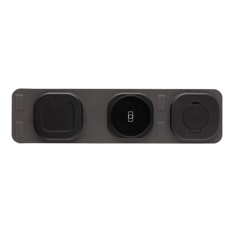 Ładowarka bezprzewodowa 3 w 1, magnetyczna ładowarka bezprzewodowa do telefonu 15W, ładowarka bezprzewodowa 5W do słuchawek i innej drobnej elektroniki, ładowarka bezprzewodowa 2,5W do smartwatcha (działa tylko z urządzeniami iOS), składana, działa z telefonami posiadającymi możliwość ładowania indukcyjnego, wykonana z ABS z recyklingu z certyfikatem RCS, całkowita zawartość materiałów z recyklingu obliczona w oparciu o wagę całkowitą przedmiotu: 38%, wejście 9V/1.1A, wyjścia: 9V/1.1A, 5V/1A, 5V/0.5A, w pudełku z papieru kraftowego z certyfikatem FSC®, ślad węglowy produktu: 1,95 kg CO2