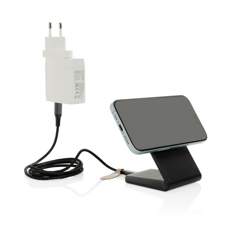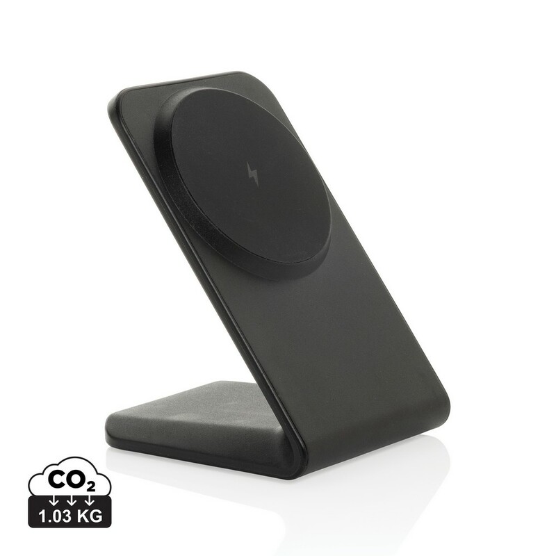 Magnetyczna ładowarka bezprzewodowa 15W, wskaźnik ładowania, 15 wbudowanych magnesów, działa z telefonami posiadającymi możliwość ładowania indukcyjnego, wejście USB-C 9V/2.22A, kabel 120 cm USB-C do USB-C w komplecie, wykonana z materiałów z recyklingu, całkowita zawartość materiałów z recyklingu obliczona na podstawie wagi całkowitej przedmiotu: 47%