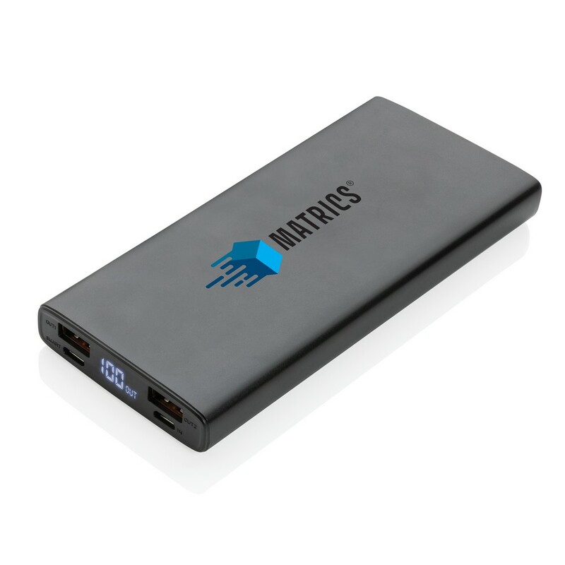 Power bank 10000 mAh, wyjście szybkiego ładowania PD (power delivery) 18W, diody wskazujące poziom naładowania, wykonany z aluminium, wbudowany akumulator litowo-polimerowy klasy A o dużej gęstości i trwałości, w pełni naładowane urządzenie może naładować telefon do 5 razy, wejście micro USB 5V/2A, wejście USB typu C 5V/3A, 9V/2A, 12V/1.5A, wyjście USB 5V/2.1A, wyjście QC 3.0 5V/3A, 9V/2A, 12V/1.5A, wyjście USB typu C 5V/3A, 9V/2A, 12V/1.5A 18W max (PD 3.0), wyjście USB 5V/3A, 9V/2A, 12V/1.5A 18W max (PD 3.0), kabel micro USB z TPE bez dodatku PVC w komplecie, ślad węglowy produktu: 4,82 kg CO2