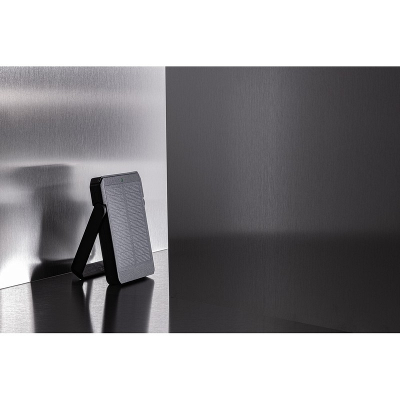 Power bank 5000 mAh z panelem słonecznym, magnetyczna ładowarka bezprzewodowa 10W, wykonany z ABS z recyklingu z certyfikatem RCS, całkowita zawartość materiałów z recyklingu obliczona w oparciu o wagę całkowitą przedmiotu: 21%, szybkość ładowania energią słoneczną 5V/0.13A, wejście 5V/2A, wyjście 5V/2A, kabel z TPE z recyklingu z certyfikatem RCS w komplecie, w pudełku z papieru kraftowego z certyfikatem FSC®, wzór zastrzeżony®, ślad węglowy produktu: 2 kg CO2