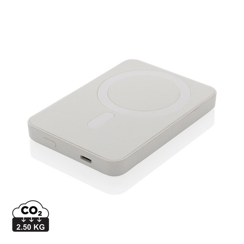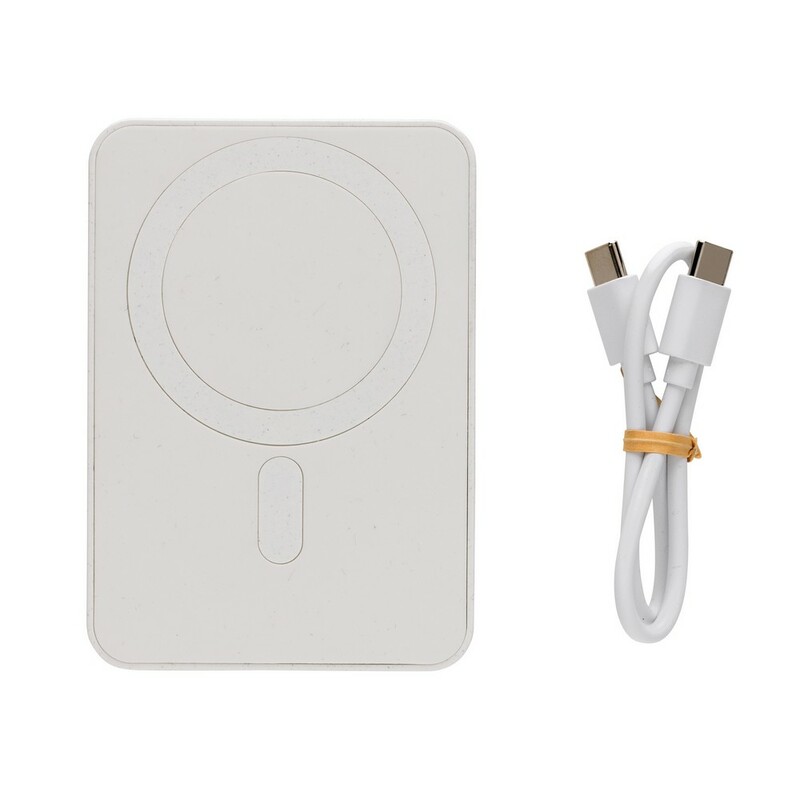 Power bank 5000 mAh, magnetyczna ładowarka bezprzewodowa 5W, wskaźniki poziomu naładowania, wykonany z ABS z recyklingu, całkowita zawartość materiałów z recyklingu obliczona na podstawie wagi całkowitej przedmiotu: 20%, wejście USB typu C 5V/2.4A, wyjście USB typu C 5V/2.4A, kabel w komplecie, w pudełku z certyfikatem FSC® mix, ślad węglowy produktu: 2,5 kg CO2