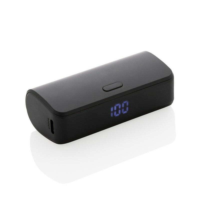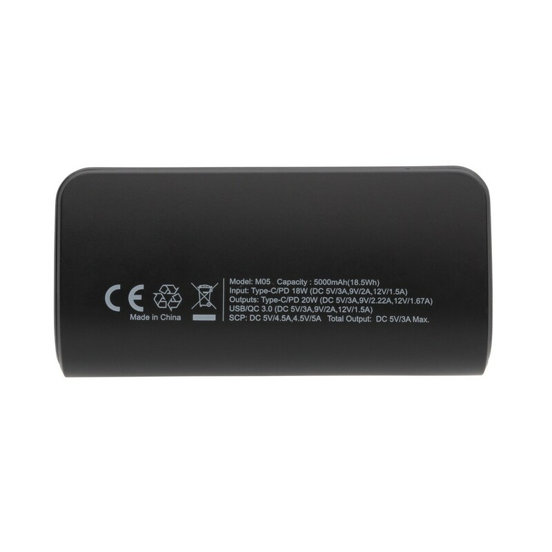Power bank 5000 mAh, szybkie ładowanie przewodowe 20W, wykonany z ABS z recyklingu z certyfikatem RCS, wyjście USB typu C, ślad węglowy produktu: 0 kg CO2
