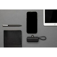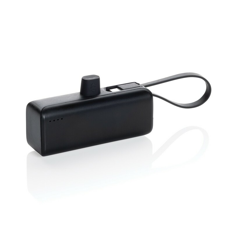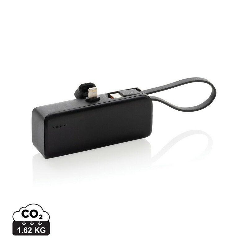 Power bank 3000 mAh, zintegrowany kabel USB C (wejście/wyjście), wyjście iOS, wykonany z ABS i TPE z recyklingu z certyfikatem RCS, wejście 5V/2.1A, wyjście 5V/2.4A, całkowita zawartość materiałów z recyklingu obliczona w oparciu o wagę całkowitą przedmiotu: 19%, w pudełku z certyfikatem FSC®