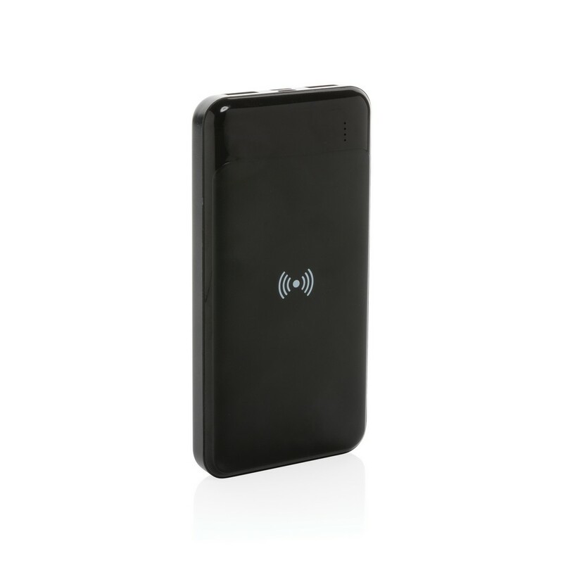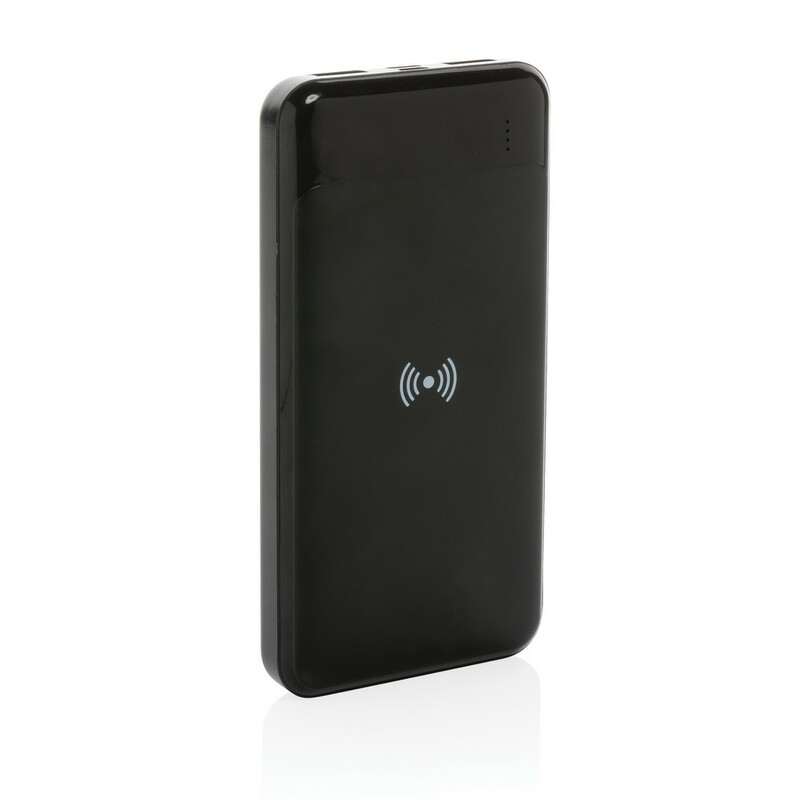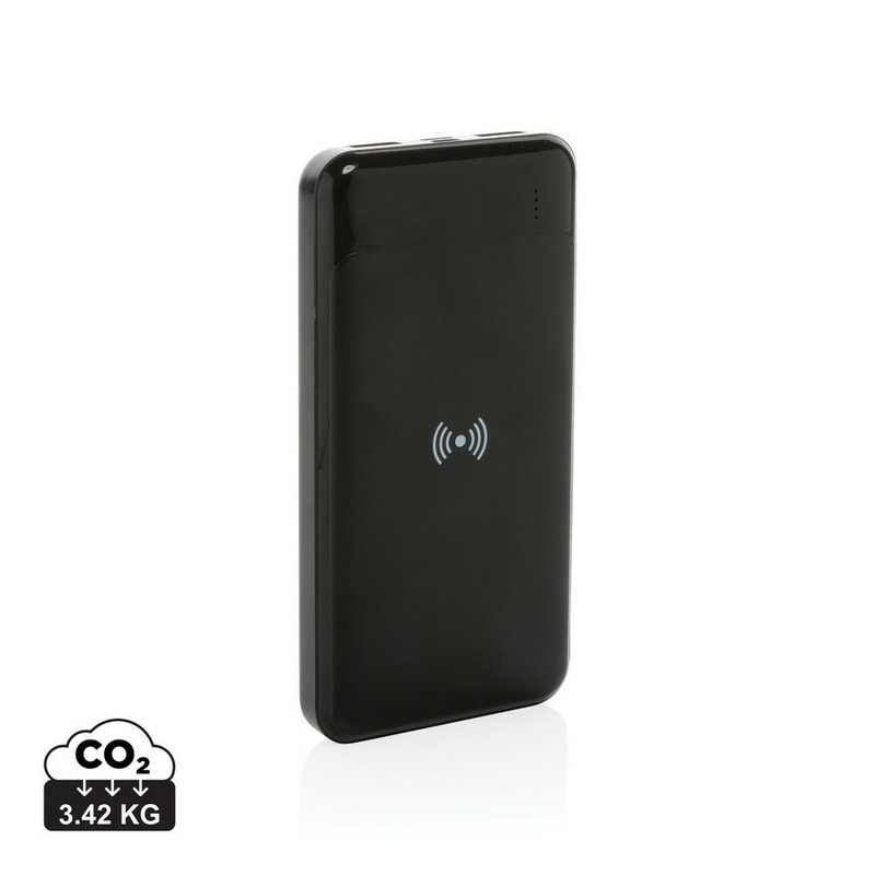 Power bank 8000 mAh, ładowarka bezprzewodowa 5W, w pełni naładowany, wbudowany akumulator litowo polimerowy klasy A pozwala na naładowanie telefonu do 4 razy, obudowa wykonana z ABS pochodzącego z recyklingu, posiadają certyfikat RCS (Recycled Claim Standard), który jest stosowany gdy produkt jest wykonany częściowo lub w całości z materiałów pochodzących z recyklingu, bezprzewodowe ładowanie jest kompatybilne ze wszystkimi urządzeniami posiadającymi możliwość ładowania indukcyjnego, wejście typu C 5V/2A, wejście micro USB 5V/2A, wyjście bezprzewodowe 5W, 2 x wyjście USB 5V/2A, kabel z TPE z recyklingu w komplecie, nie zawiera PVC, ślad węglowy produktu: 3,42 kg CO2