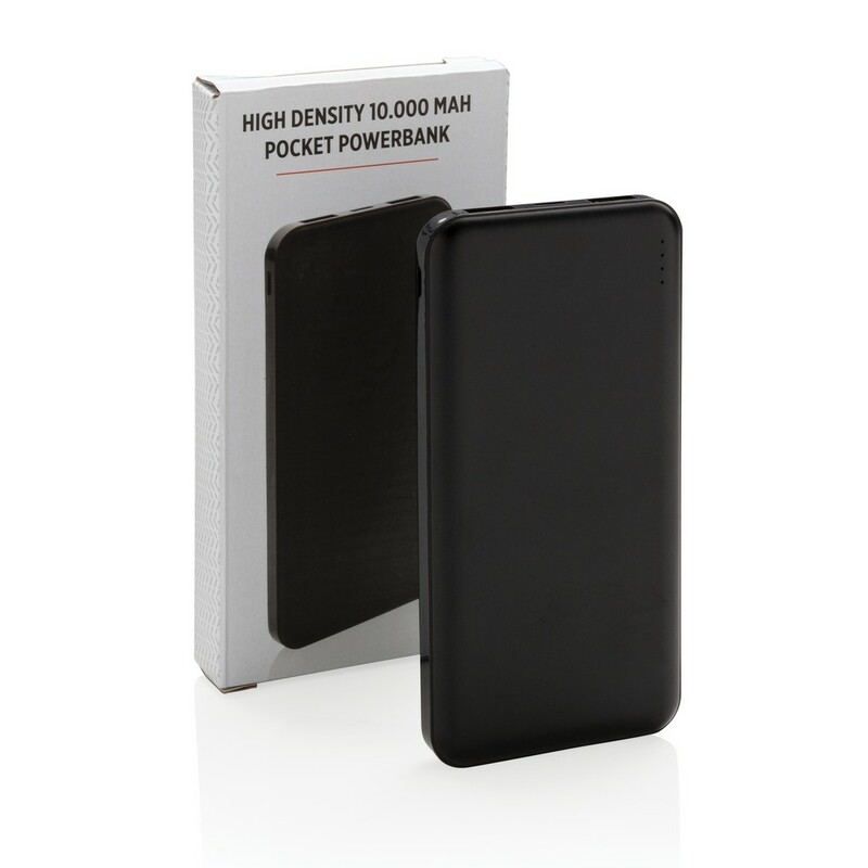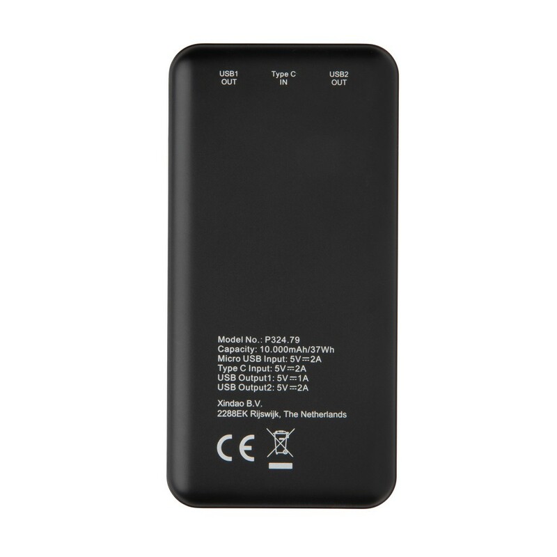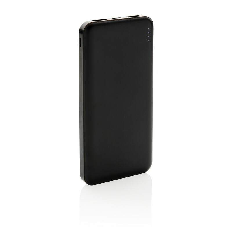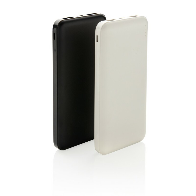 Power bank 10000 mAh, 2 wyjścia USB do ładowania 2 urządzeń jednocześnie, 4 diody wskazujące poziom naładowania, kieszonkowy rozmiar, wykonany z lekkiego ABS, wbudowany akumulator litowo-polimerowy klasy A o dużej gęstości i trwałości, w pełni naładowane urządzenie może naładować telefon do 5 razy, wejście 5V/2A, wyjście USB 1 5V/2A, wyjście USB 2 5V/1A, kabel micro USB w komplecie, ślad węglowy produktu: 4,11 kg CO2