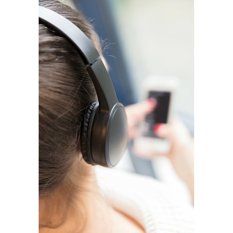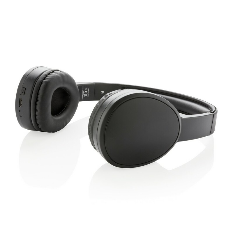 Słuchawki bezprzewodowe BT 4.1, nauszne, wykonane z ABS, poduszki z PU, regulowany rozmiar opaski na głowę, w pełni naładowany akumulator o pojemności 200 mAh umożliwia słuchanie muzyki do 4 godzin, zasięg do 10 m, kabel micro USB do ładowania w komplecie