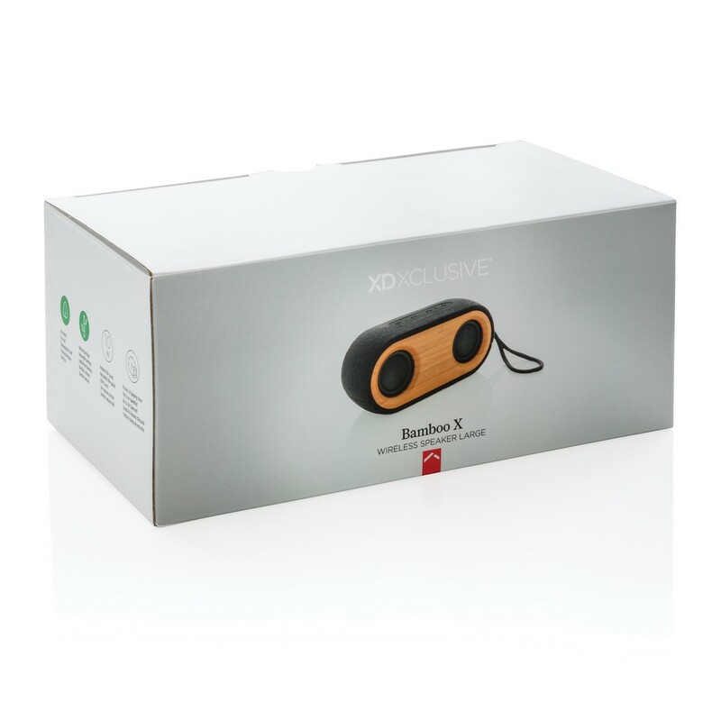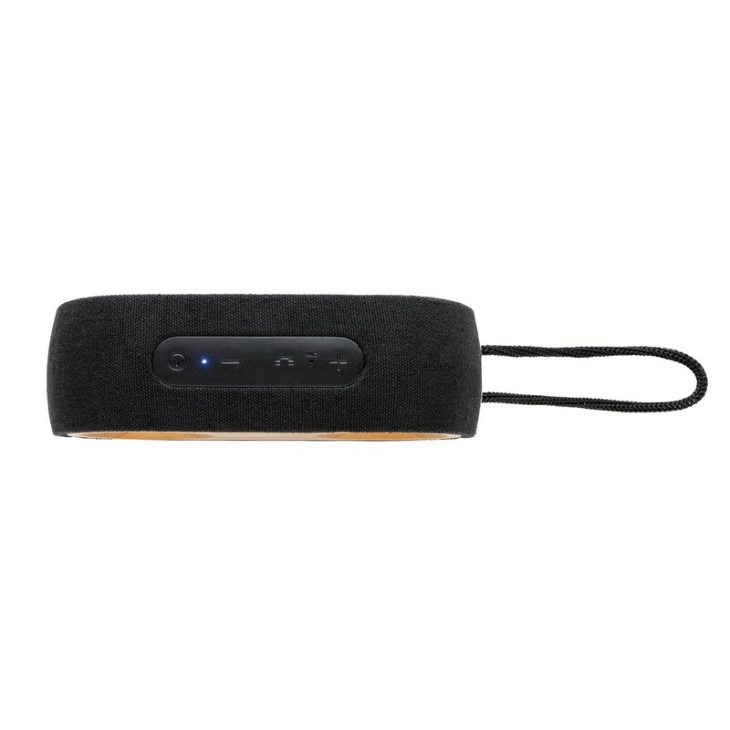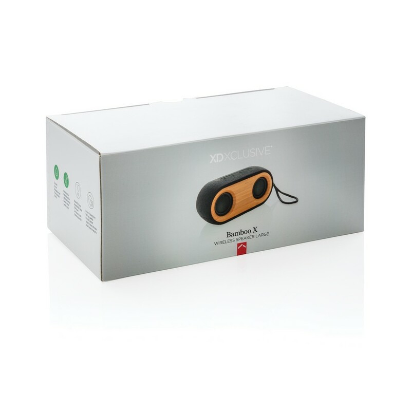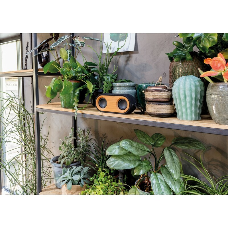Bambusowy głośnik bezprzewodowy 10W, BT 4.2, wysokiej jakości komponenty wewnątrz gwarantujące długotrwałe użytkowanie produktu, wysoka jakość dźwięku, wykonany został zgodnie z ideą zrównoważonego rozwoju z wykorzystaniem trwałych materiałów, wytrzymałego bambusa i tkaniny (30% organicznej bawełny, 40% konopi, 30% z PET z recyklingu), w pełni naładowany akumulator o pojemności 2200 mAh umożliwia odtwarzanie muzyki do 6 godzin, zasięg do 10 m, opakowanie głośnika nie zawiera plastiku, wzór zastrzeżony®, ślad węglowy produktu: 3,59 kg CO2