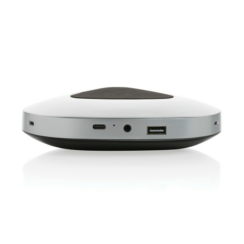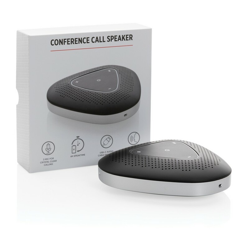 Bezprzewodowy głośnik konferencyjny BT 5.1, 2 wbudowane mikrofony wysokiej jakości do płynnych rozmów, wbudowany akumulator o pojemności 1200 mAh pozwala na użytkowanie do 6 godzin na jednym ładowaniu, przycisk wyciszania oraz kontroli głośności, kabel USB typu C o długości 100 cm w komplecie, ślad węglowy produktu: 3,37 kg CO2