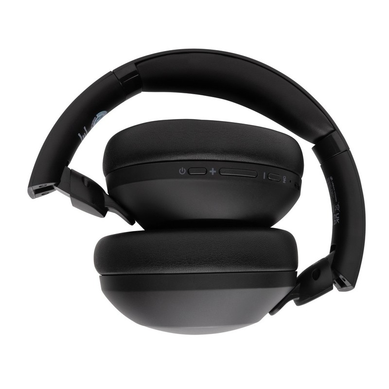 Nauszne słuchawki bezprzewodowe z systemem aktywnej redukcji szumów (ANC), poziom redukcji szumów do 25 dB, składane, wbudowany mikrofon, funkcja odbierania połączeń, komfortowe nauszniki, czas odtwarzania na jednym ładowaniu do 50 godzin, wykonane z ABS z recyklingu z certyfikatem RCS, całkowita zawartość materiału z recyklingu obliczona w oparciu o wagę całkowitą przedmiotu: 58%, nie zawiera PVC, ślad węglowy produktu: 2,23 kg CO2