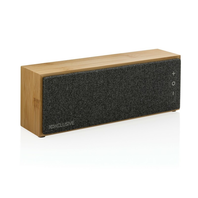 Głośnik bezprzewodowy 10W, BT 5.1 wykonany z bambusa i ABS z recyklingu, zawartość materiałów z recyklingu obliczona na podstawie wagi całkowitej przedmiotu: 23%, akumulator o pojemności 2000 mAh umożliwia odtwarzanie muzyki do 6 godzin, ponowne naładowanie w ciągu 2 godzin, zasięg do 10m, z funkcją odbioru i mikrofonem do odbierania połączeń (wideo), w pudełku kraftowym z certyfikatem FSC® mix, kabel wykonany z TPE z recyklingu w komplecie., ślad węglowy produktu: 5,65 kg CO2