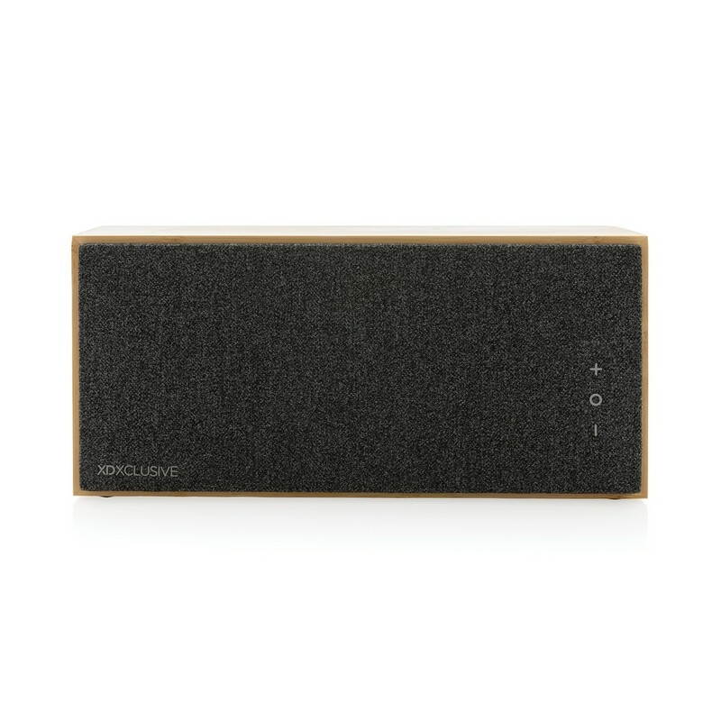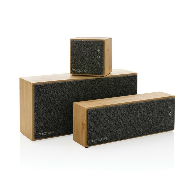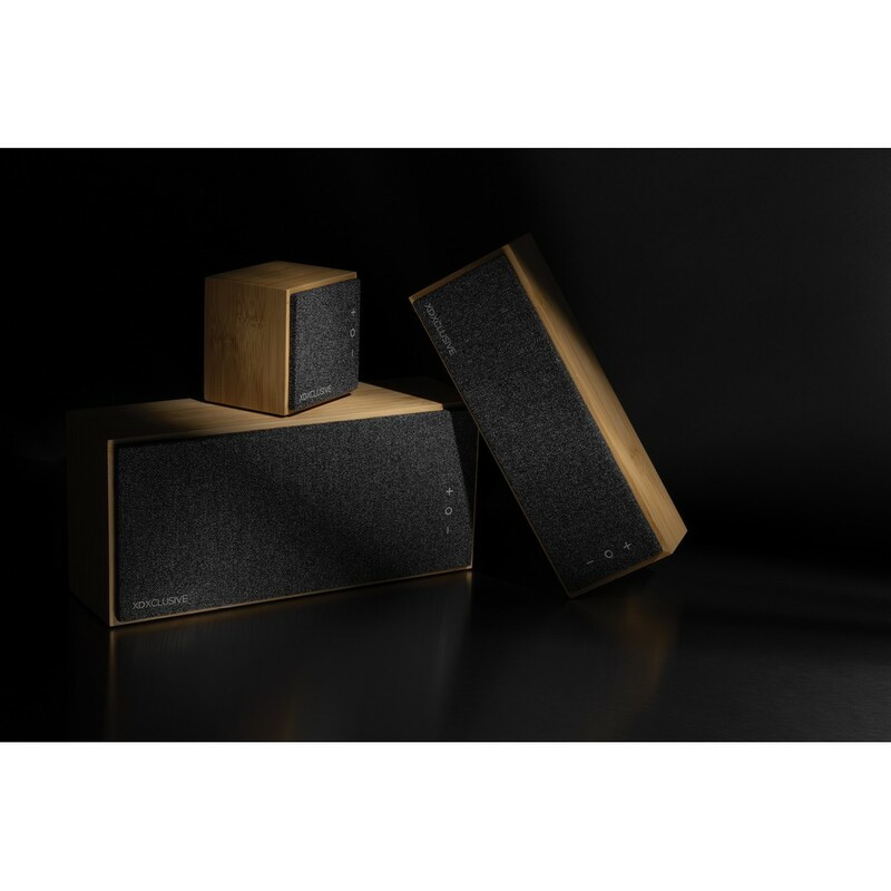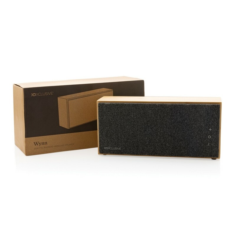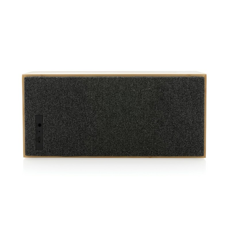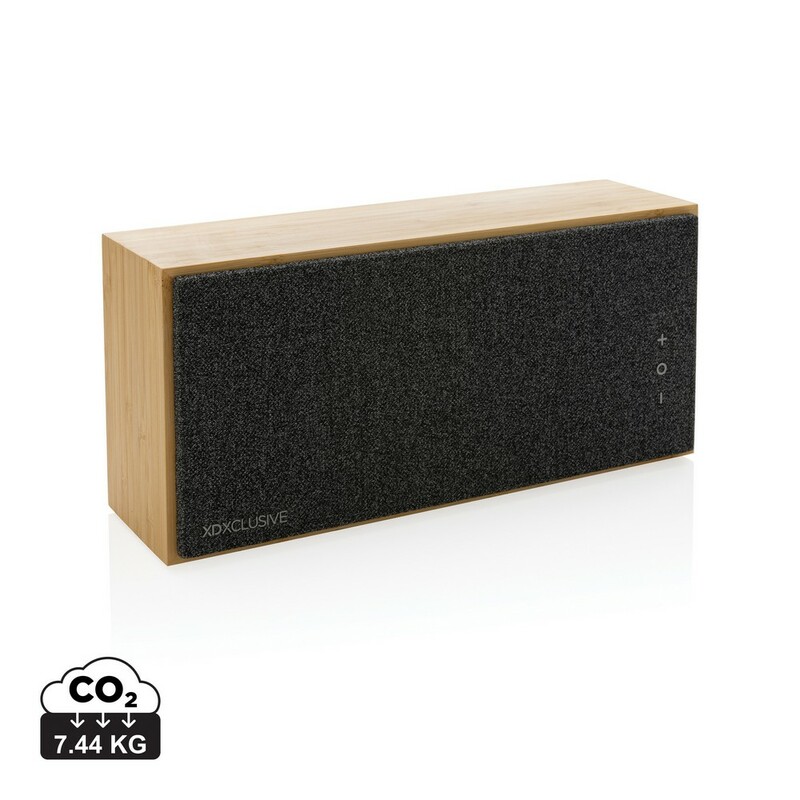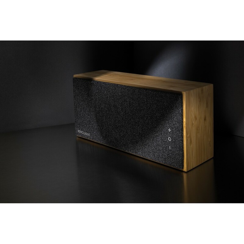 Głośnik bezprzewodowy 20W, BT 5.1, wykonany z naturalnego bambusa z certyfikatem FSC®, plastikowe elementy wykonane z ABS z recyklingu z certyfikatem RCS, zawartość materiału z recyklingu 17% obliczona na podstawie wagi całkowitej produktu, czysty dźwięk i mocny bas, funkcja odbierania połączeń, wbudowany mikrofon, wbudowany akumulator o pojemności 1200 mAh umożliwia odtwarzanie muzyki do 6 godzin, ponowne ładowanie w 3 godziny, kabel z TPE z recyklingu w komplecie, w kraftowym pudełku z certyfikatem FSC® mix, nie zawiera PVC, ślad węglowy produktu: 7,44 kg CO2
