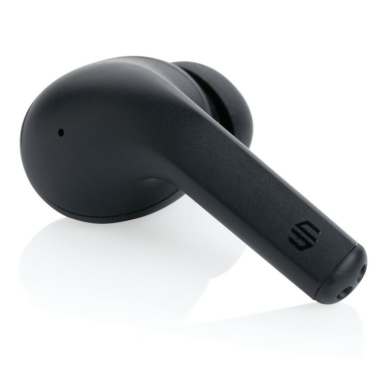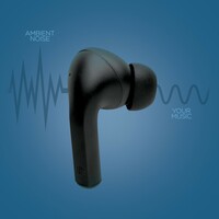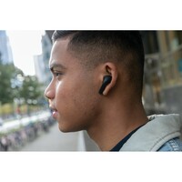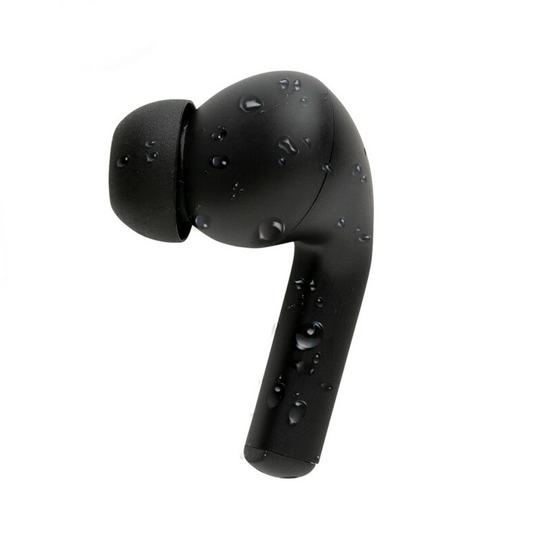 Bezprzewodowe słuchawki douszne z systemem aktywnej redukcji szumów (ANC), mocny i czysty dźwięk, poziom redukcji szumów do 25 dB, wodoodporne IPX4 (całkowita ochrona przed spryskiwaniem i zachlapaniem wodą z różnych kierunków z natężeniem do 10 litrów na minutę), dotykowy panel sterowania, wbudowany mikrofon, funkcja odbierania połączeń, do 5 godzin odtwarzania na jednym ładowaniu, etui ładujące zapewnia 20 godzin odtwarzania, nie zawiera PVC, opakowanie nie zawiera plastiku, ślad węglowy produktu: 0,98 kg CO2