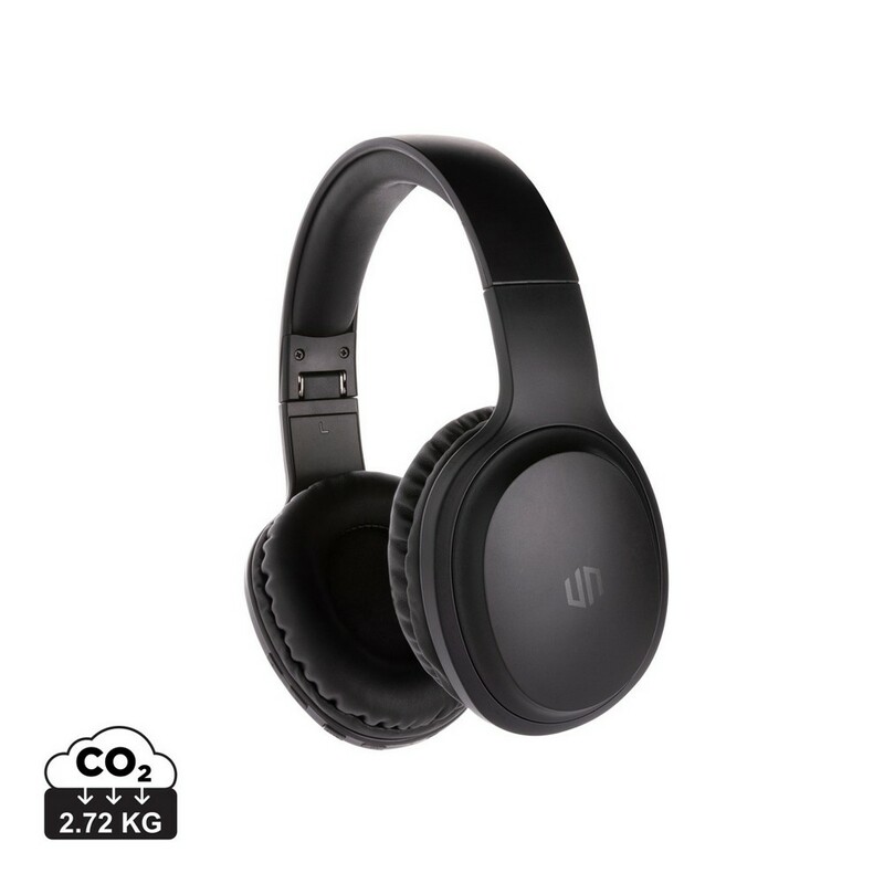 Nauszne słuchawki bezprzewodowe, składane, przycisk wzmacniający basy z boku słuchawek, wbudowany mikrofon, funkcja odbierania połączeń, komfortowe nauszniki, czas odtwarzania na jednym ładowaniu do 35 godzin, nie zawiera PVC, opakowanie nie zawiera plastiku, ślad węglowy produktu: 2,72 kg CO2