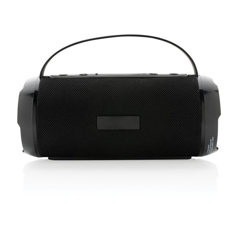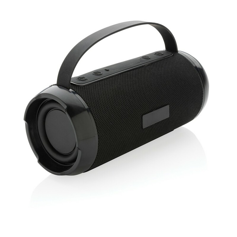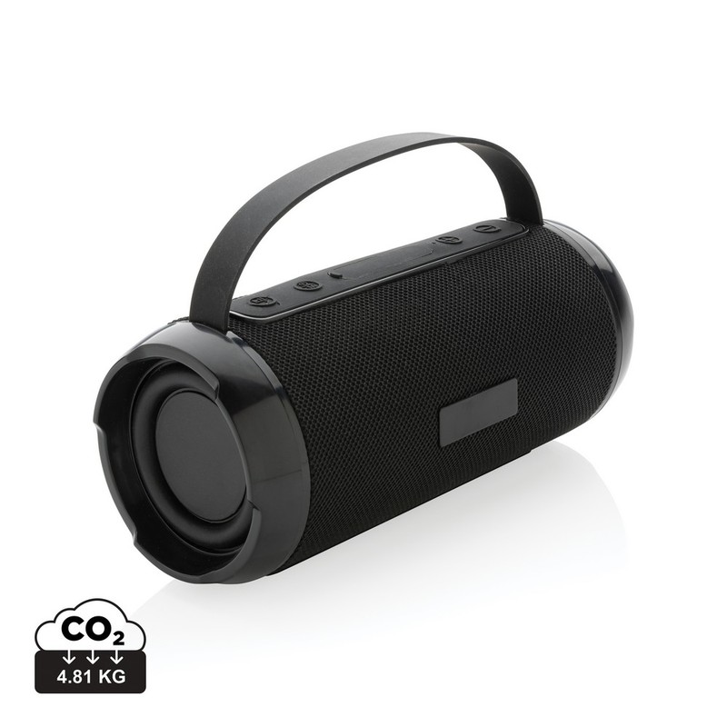 Głośnik bezprzewodowy 6W BT 5.0, wodoodporny IPX4 (całkowita ochrona przed spryskiwaniem i zachlapaniem wodą z różnych kierunków z natężeniem do 10 litrów na minutę), mikrofon, funkcja odbierania połączeń, wbudowany akumulator o pojemności 1200 mAh umożliwia odtwarzanie do 6 godzin, zasięg do 10m, wykonany z ABS i PET z recyklingu z certyfikatem RCS, całkowita zawartość materiałów z recyklingu obliczona na podstawie wagi całkowitej przedmiotu: 41%, kabel do ładowania z TPE z recyklingu w komplecie, w pudełku z papieru kraftowego z certyfikatem FSC® mix, ślad węglowy produktu: 4,5 kg CO2