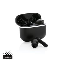 Bezprzewodowe słuchawki douszne TWS 2.0 (True Wireless Stereo), BT 5.3, wykonane z ABS, zawartość materiałów z recyklingu obliczona na podstawie wagi całkowitej przedmiotu: 59%, etui 400 mAh pełniące funkcję stacji ładującej w komplecie, akumulator słuchawek 40 mAh umożliwia odtwarzanie muzyki do 4 godzin, ponowne naładowanie za pomocą etui w 1.5 godziny, zasięg do 10 metrów, w pudełku z certyfikatem FSC® mix, kabel wykonany z TPE bez dodatku PVC w komplecie, ślad węglowy produktu: 0,62 kg CO2