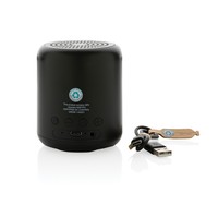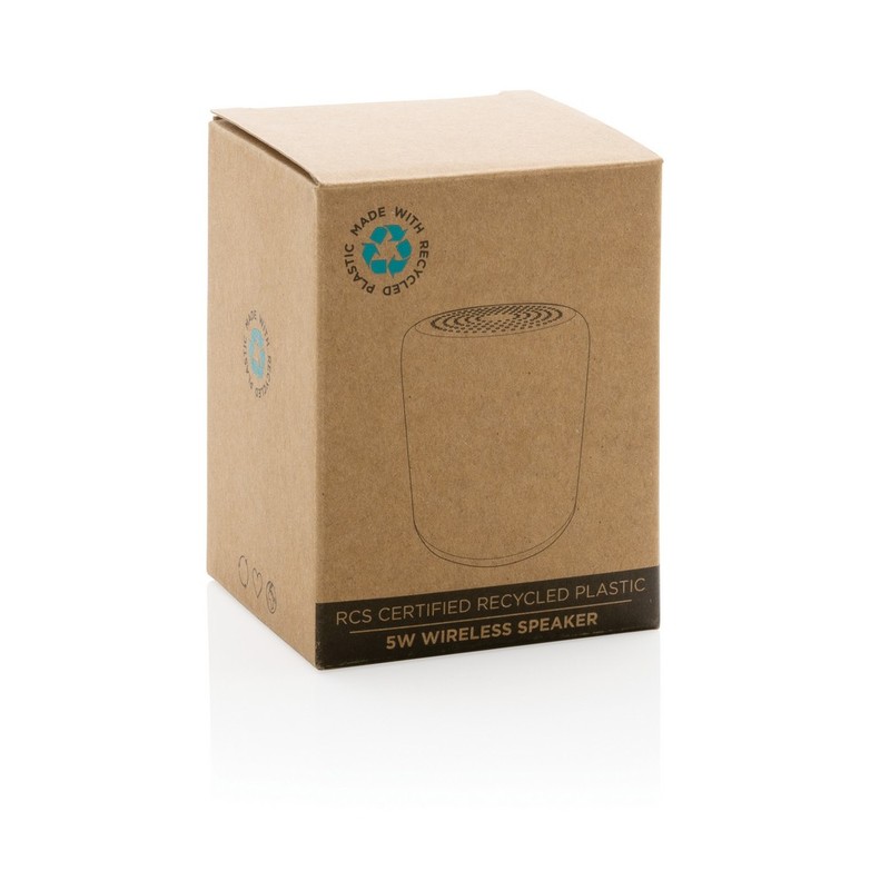 Głośnik bezprzewodowy 5W, BT 5.0, wykonany z ABS i PET pochodzącego z recyklingu z certyfikatem RCS (Recycled Claim Standard), całkowita zawartość materiałów z recyklingu obliczona na podstawie wagi całkowitej przedmiotu: 38%, akumulator o pojemności 300 mAh umożliwia odtwarzanie muzyki do 5 godzin, zasięg do 10m, wbudowany mikrofon, funkcja odbierania połączeń, w pudełku kraftowym z certyfikatem FSC® mix, kabel wykonany z TPE z recyklingu w komplecie, nie zawiera PVC, ślad węglowy produktu: 3,75 kg CO2