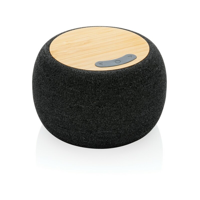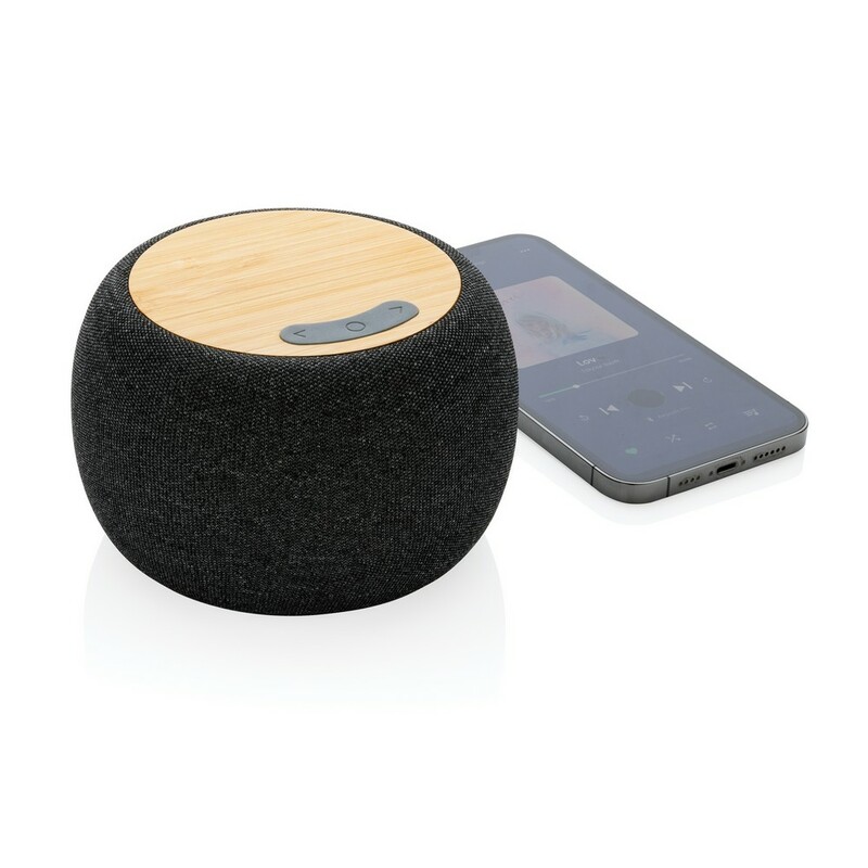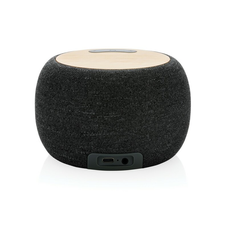 Głośnik bezprzewodowy 5W, BT 5.3, wykonany z naturalnego bambusa z certyfikatem FSC® oraz z ABS i PET z recyklingu z certyfikatem RCS, zawartość materiałów z recyklingu 51% obliczona na podstawie wagi całkowitej produktu, funkcja odbierania połączeń, wbudowany mikrofon, wbudowany akumulator o pojemności 1200 mAh umożliwia odtwarzanie muzyki do 6 godzin, kabel z TPE z recyklingu w komplecie, w kraftowym pudełku z certyfikatem FSC® mix, nie zawiera PVC, ślad węglowy produktu: 2,66 kg CO2