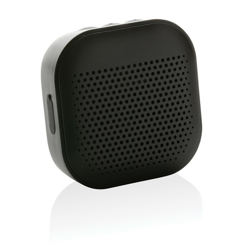 Głośnik bezprzewodowy 3W BT5.3, wodoodporny IPX4 (całkowita ochrona przed spryskiwaniem i zachlapaniem wodą z różnych kierunków z natężeniem do 10 litrów na minutę), wbudowany mikrofon, funkcja odbierania połączeń, wbudowany akumulator o pojemności 400 mAh pozwala na odtwarzanie muzyki do 3,5 godziny, zasięg do 10 m, wykonany z ABS z recyklingu z certyfikatem RCS, całkowita zawartość materiałów z recyklingu obliczona na podstawie wagi całkowitej przedmiotu: 41%, kabel z TPE z recyklingu w komplecie, w pudełku z papieru kraftowego z certyfikatem FSC® mix, ślad węglowy produktu: 1,61 kg CO2