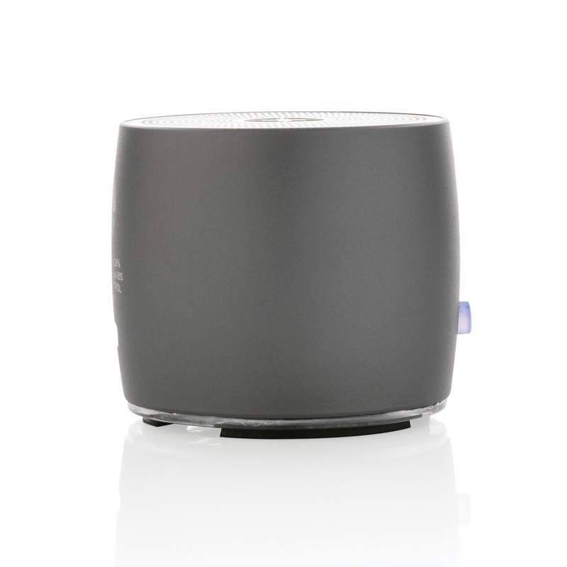 Głośnik bezprzewodowy 3W, BT 5.0, wykonany z aluminium z recyklingiem z certyfikatem RCS oraz ABS z recyklingu, całkowita zawartość materiałów z recyklingu obliczona na podstawie wagi całkowitej przedmiotu: 26%, wbudowany akumulator o pojemności 500 mAh pozwala na odtwarzanie muzyki do 4 godzin, ponowne ładowanie w 2 godziny, kabel USB typu C z TPE z recyklingu w komplecie, w pudełku z papieru kraftowego z certyfikatem FSC®, ślad węglowy produktu: 2,81 kg CO2