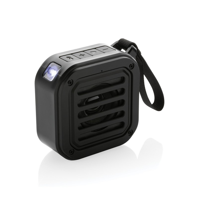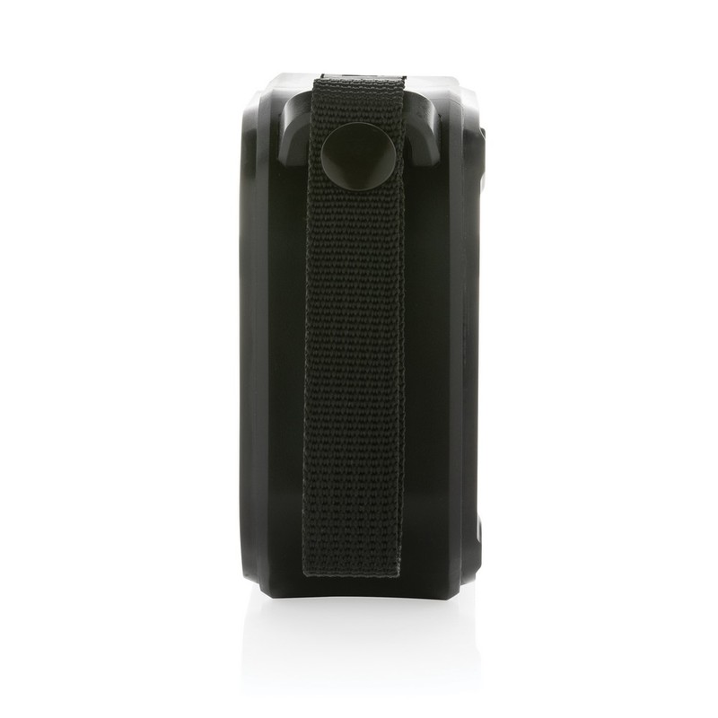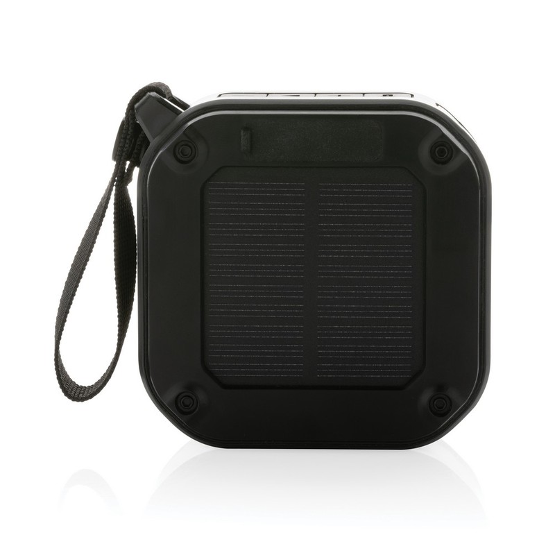 Głośnik bezprzewodowy 3W BT5.3, zintegrowany panel słoneczny do ładowania głośnika o współczynniku konwersji 19%, wbudowany mikrofon, funkcja odbierania połączeń, zintegrowana lampka LED o mocy 30 lm, wbudowany akumulator o pojemności 400 mAh pozwala na odtwarzanie muzyki do 5 godzin, zasięg do 10 m, wykonany z ABS z recyklingu z certyfikatem RCS, całkowita zawartość materiałów z recyklingu obliczona na podstawie wagi całkowitej przedmiotu: 38%, kabel z TPE z recyklingu w komplecie, w pudełku z papieru kraftowego z certyfikatem FSC® mix, ślad węglowy produktu: 1,81 kg CO2